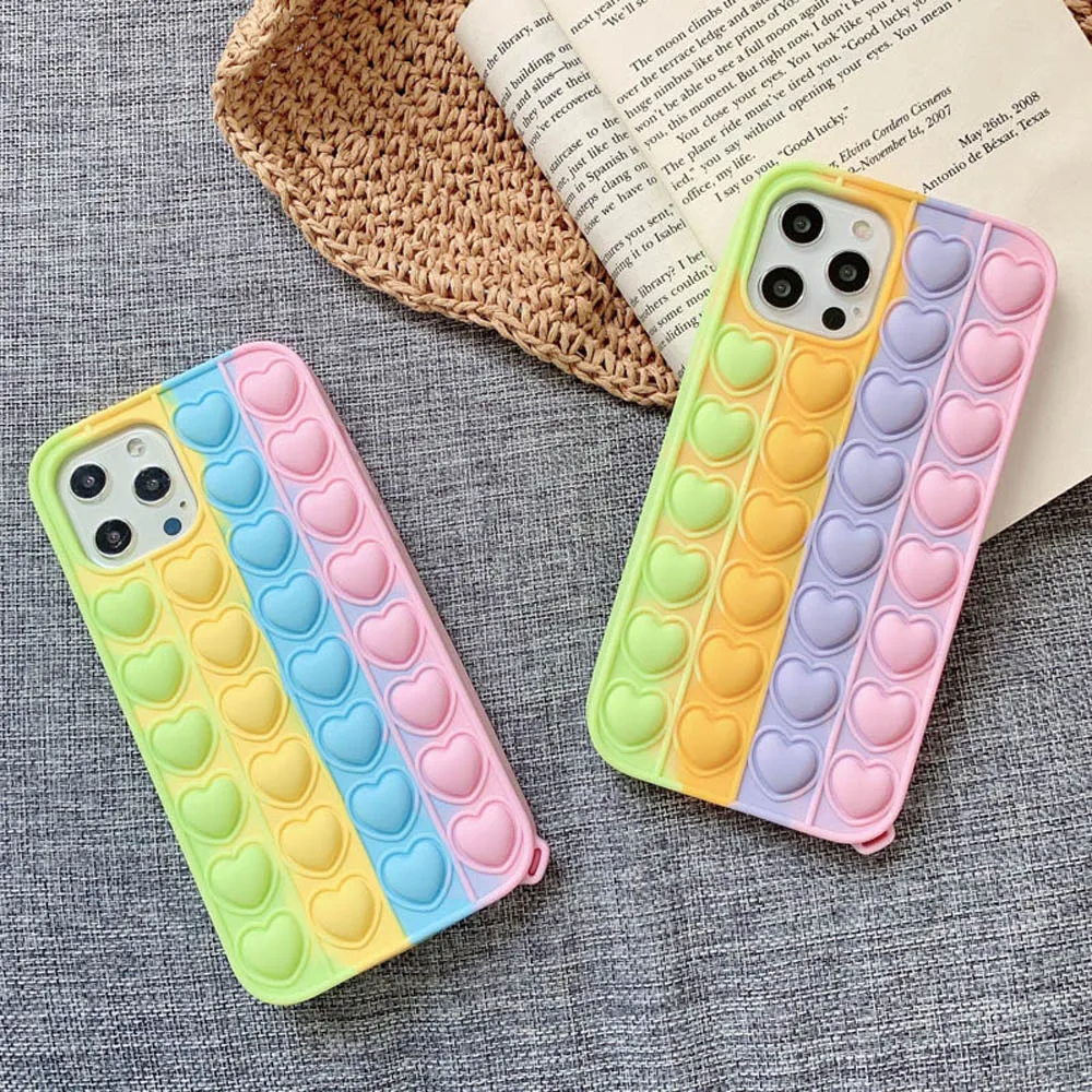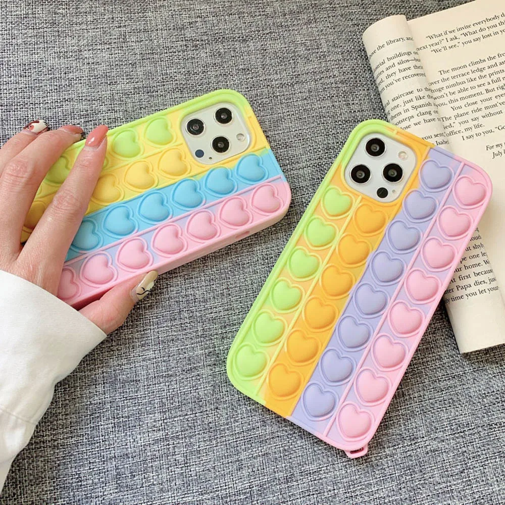 Чехол для Телефона iPhone 12 Mini 12 11 Pro Max 7 8 Plus SE 2020 X XR XSMax с любовным сердцем, снятием стресса, игрушками-антистрессами, пузырьками, силиконовый чехол для телефона
