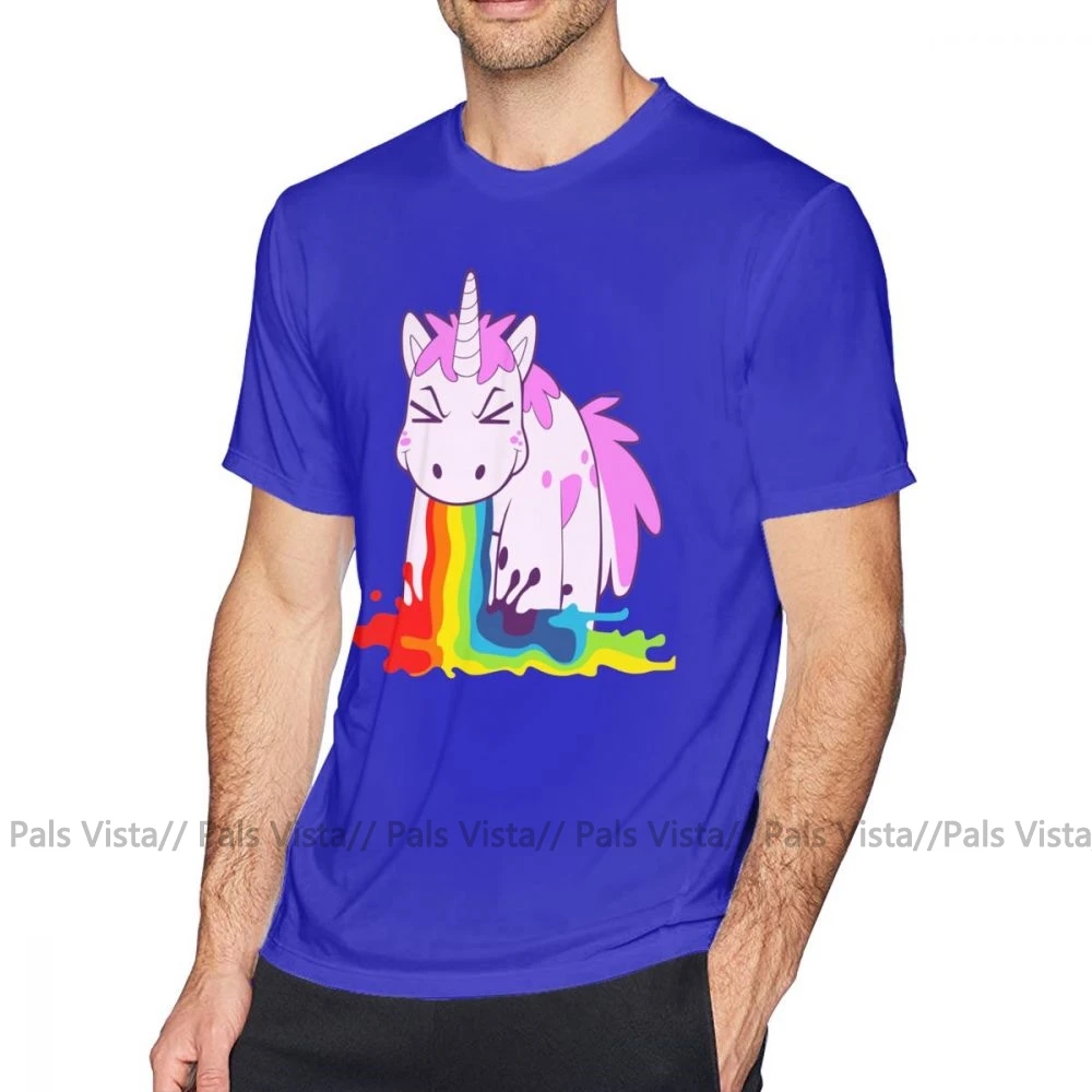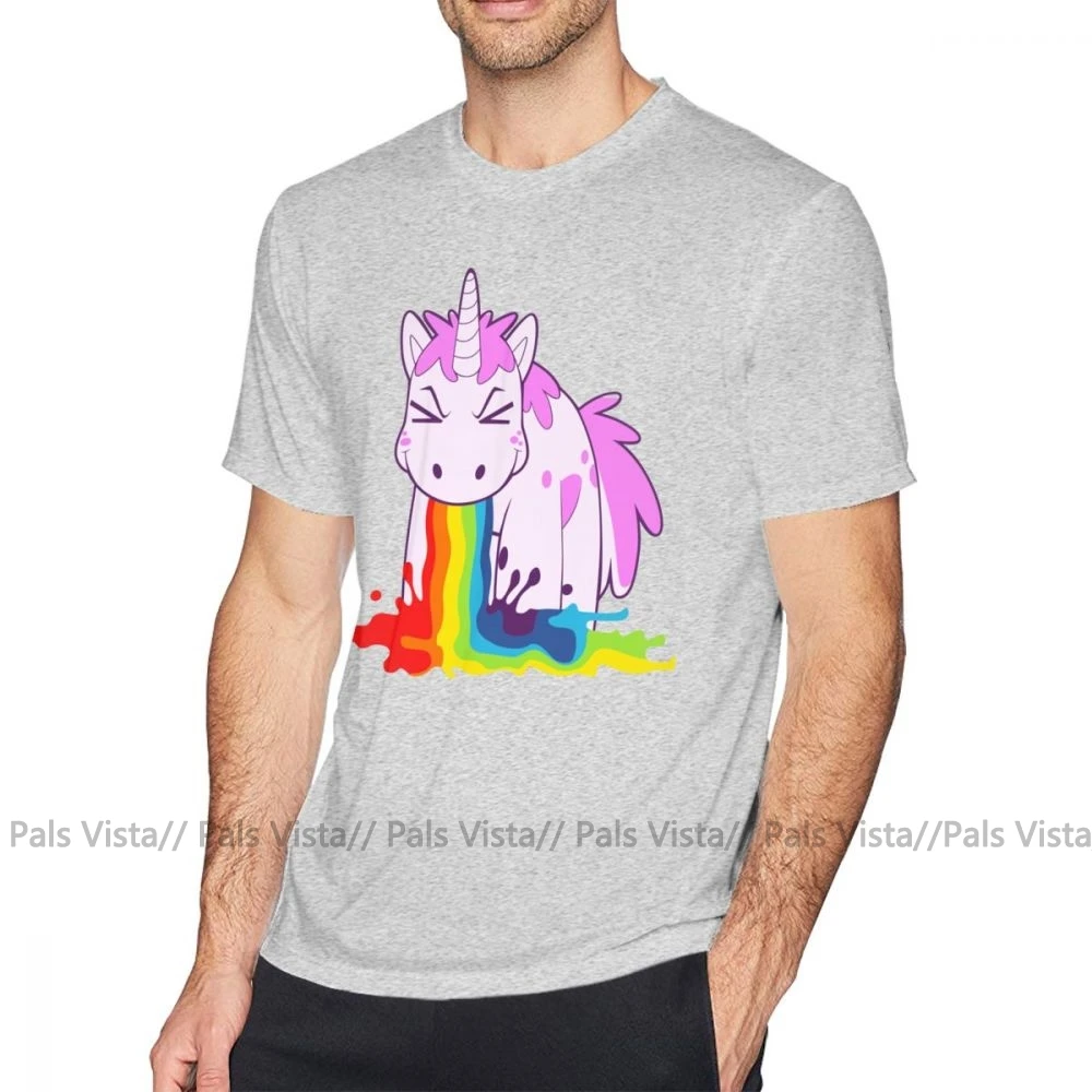 Футболка с единорогом и радугой I Puke, футболка оверсайз из 100 хлопка, футболка с графическим рисунком и коротким рукавом, Мужская забавная уличная футболка