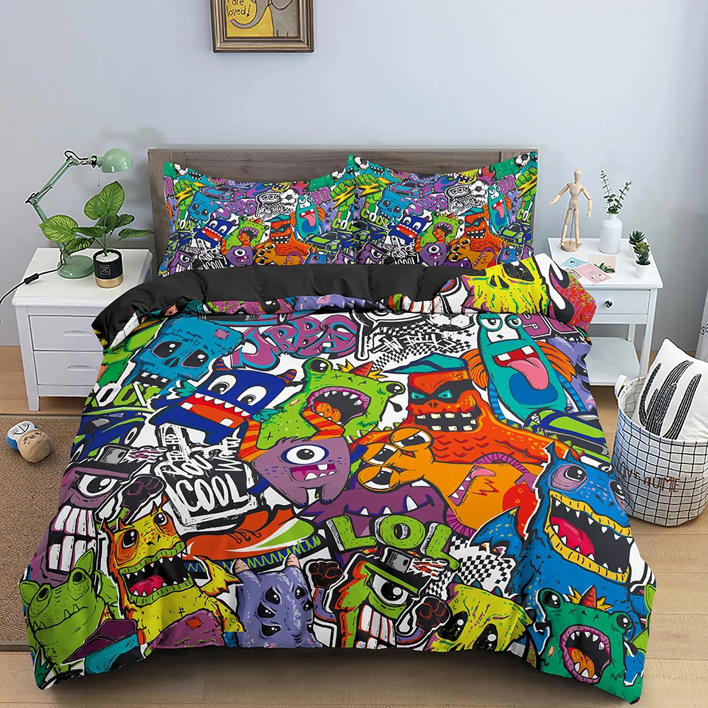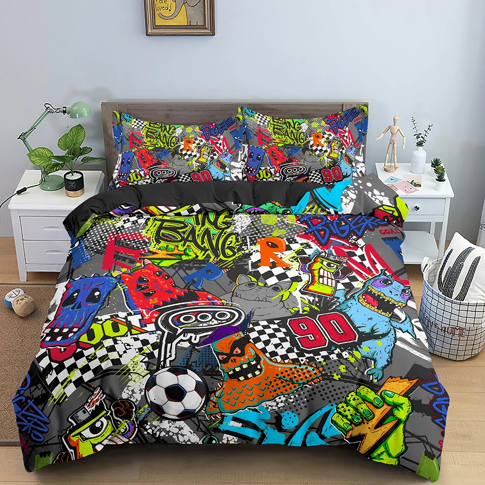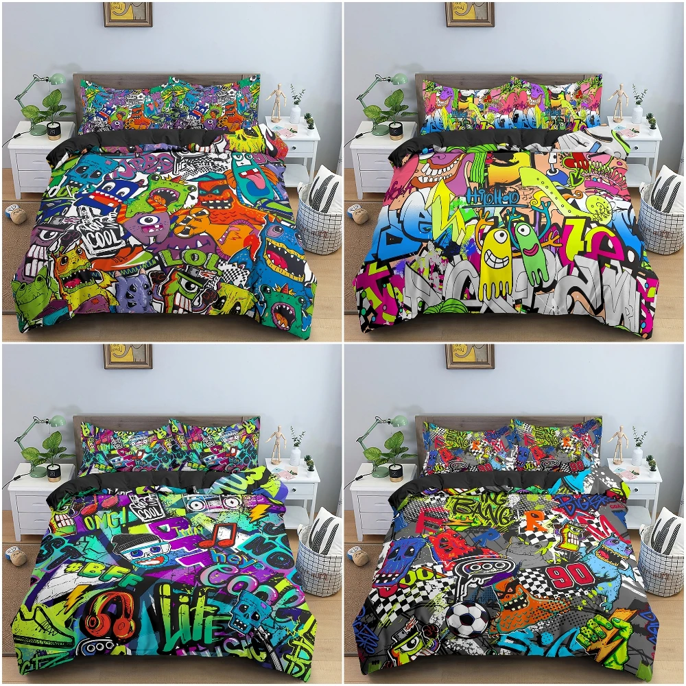 Граффити Постельное белье Графический постельное белье для детей и подростков для взрослых в стиле хип-хоп хиппи, стеганое одеяло, размеры: комплект для обычной двухстальной стены городов в стиле протестного уличного искусства, Стёганое одеяло крышки