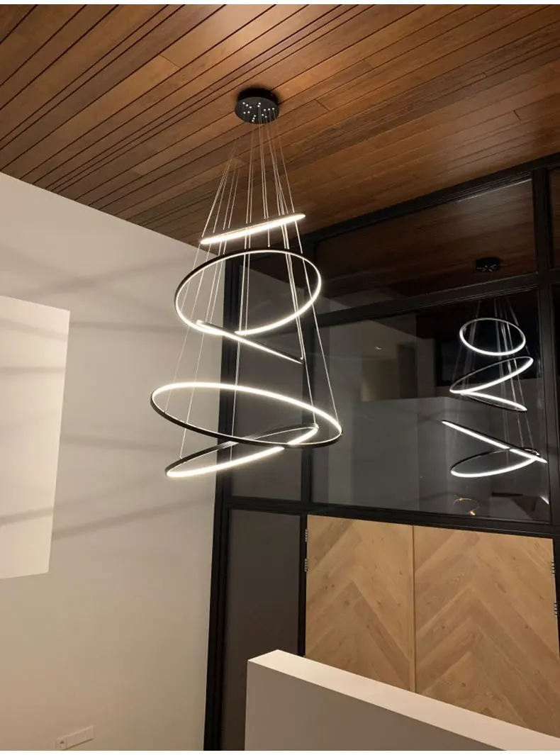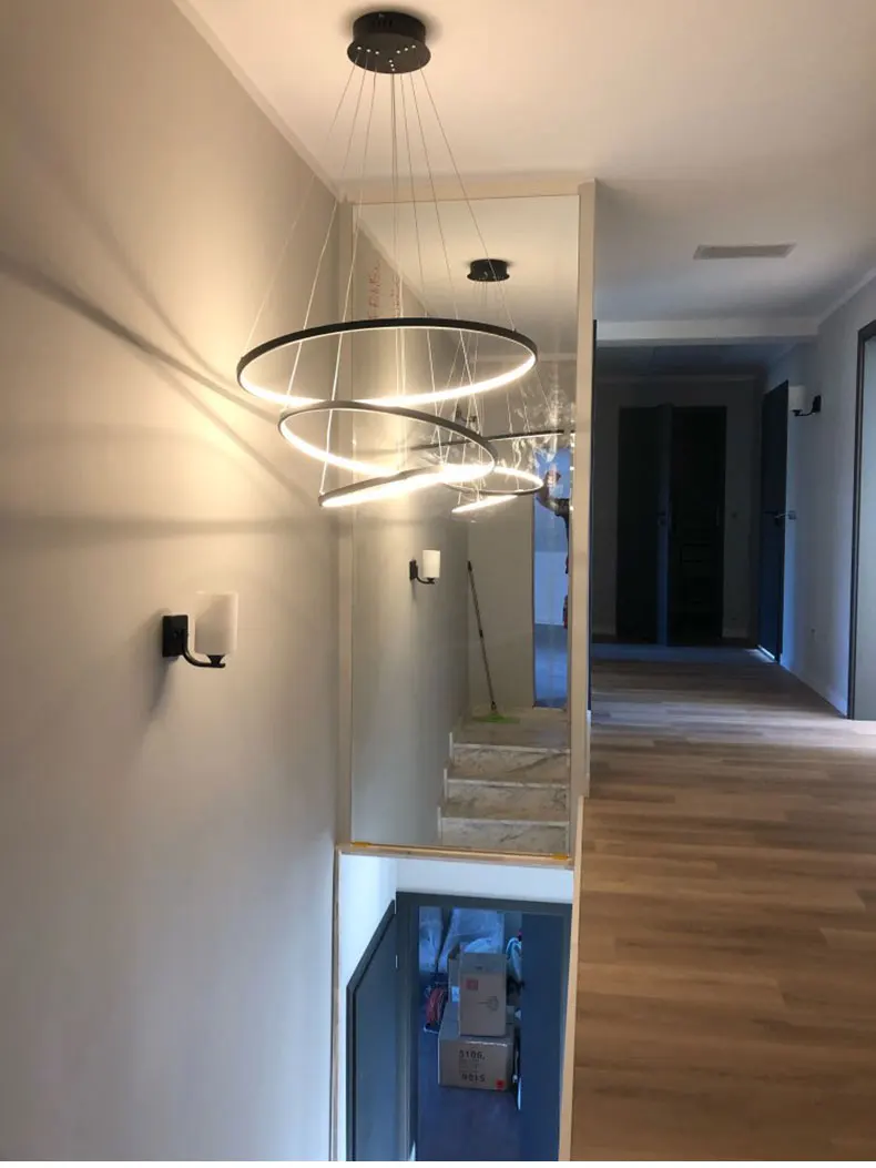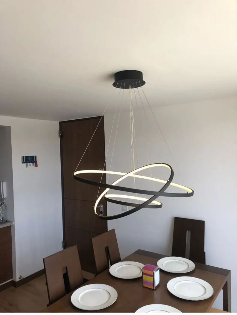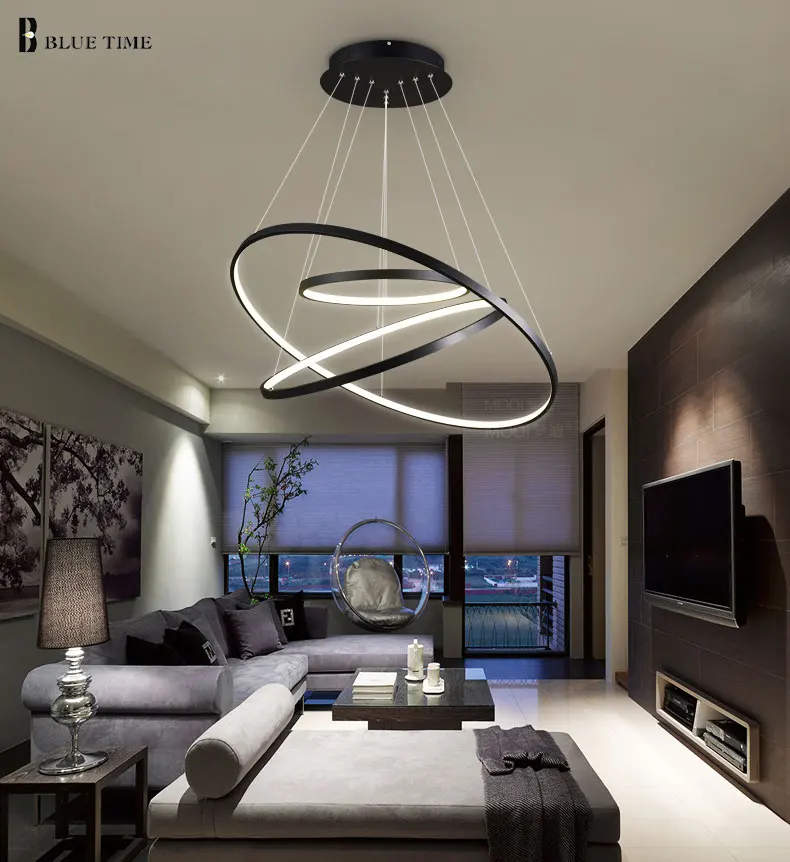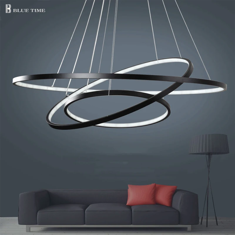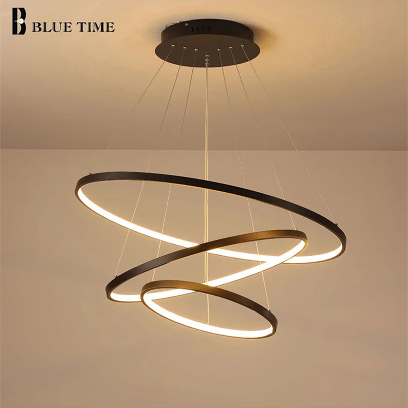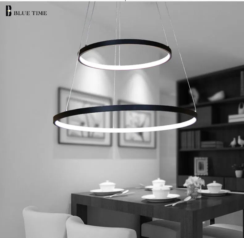 Современная светодиодная подвесная люстра Ring Circle, светильник для гостиной, спальни, столовой, фойе, комнатное освещение, черные осветительные приборы