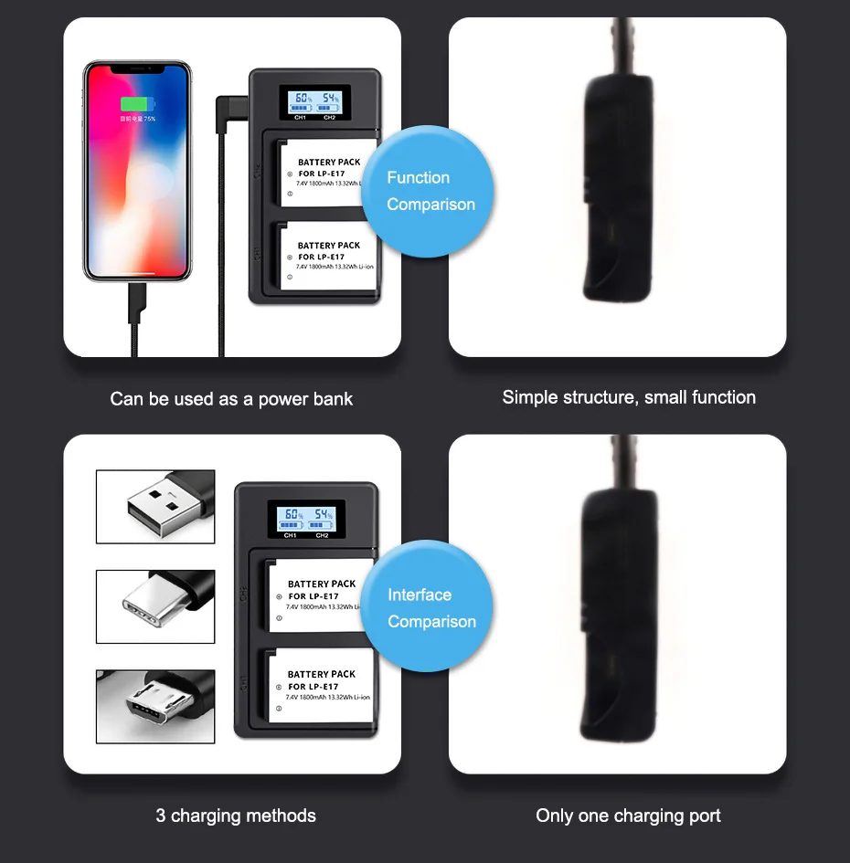 LPE17 LP E17 LP-E17 E17 Батарея + ЖК-дисплей USB Зарядное устройство для цифровой однообъективной зеркальной камеры Canon EOS 200 250D M3 M5 M6 750D 760D T6i T6s 800D 8000D 77D поцелуй X8i Камера