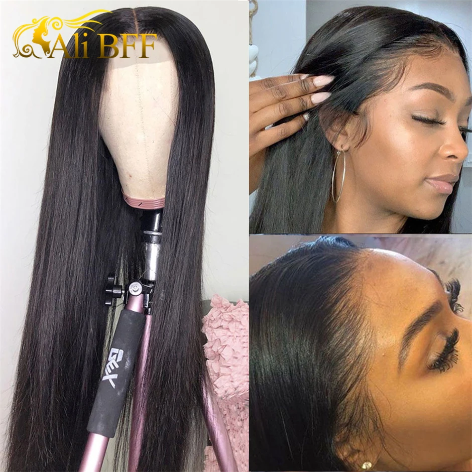 Парики из натуральных прямых волос на сетке для женщин, 13X4 HD, Длинные малазийские прямые волосы на сетке, ALI BFF