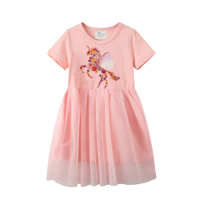 Летнее Хлопковое платье-пачка для девочек, с аппликацией единорога