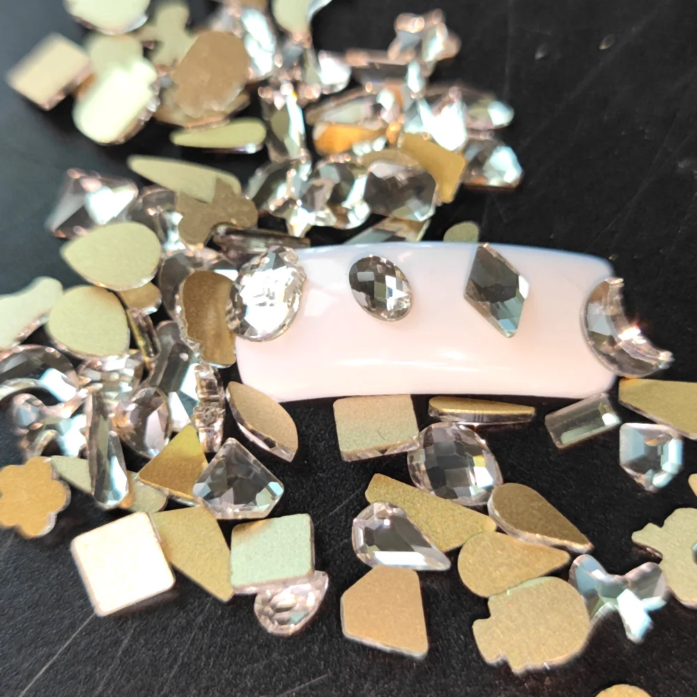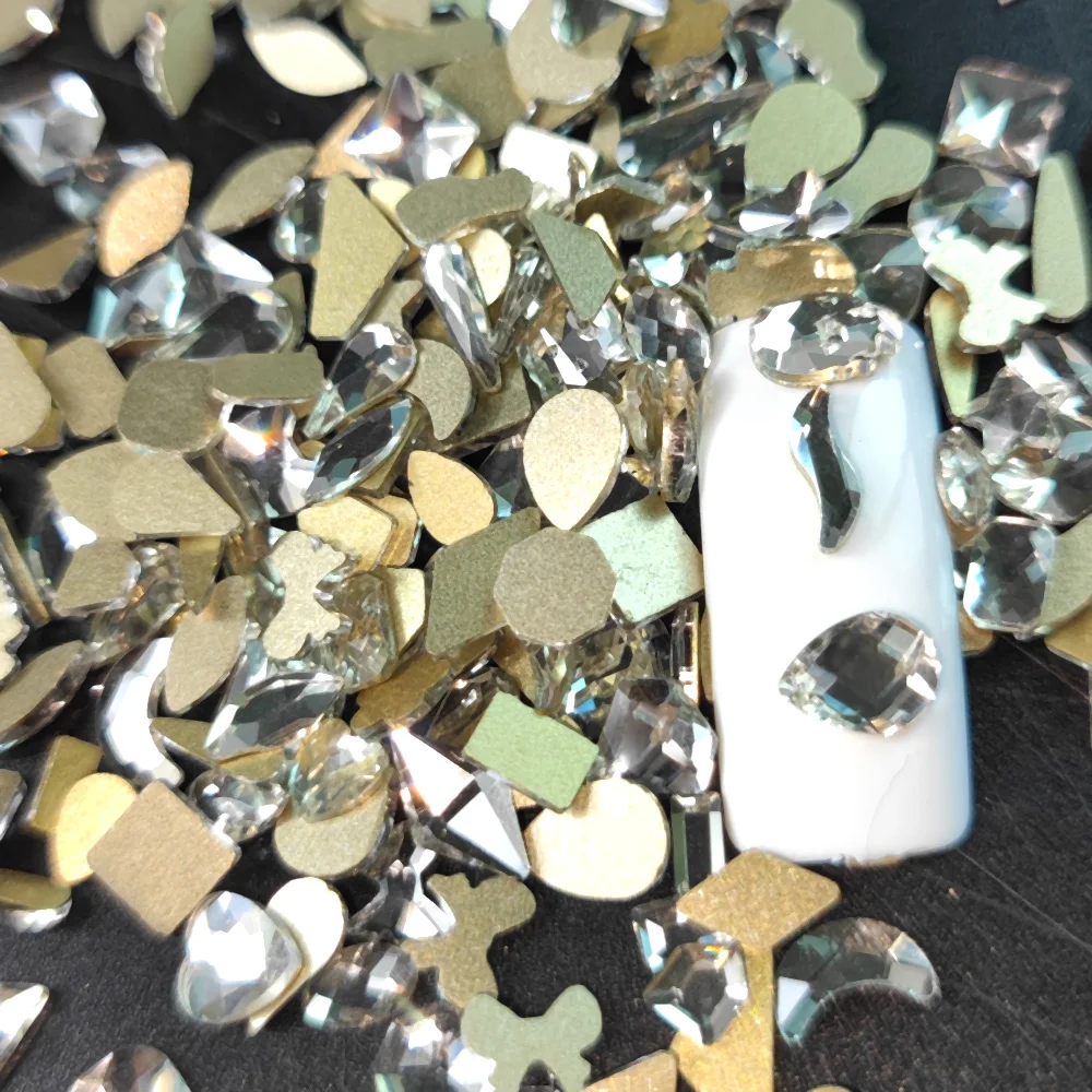 YanRuo 20 шт.100 шт. смешанные прозрачные кристаллы для ногтевого дизайна с плоским дном разной формы стеклянные алмазные украшения Дизайн ногтей украшения
