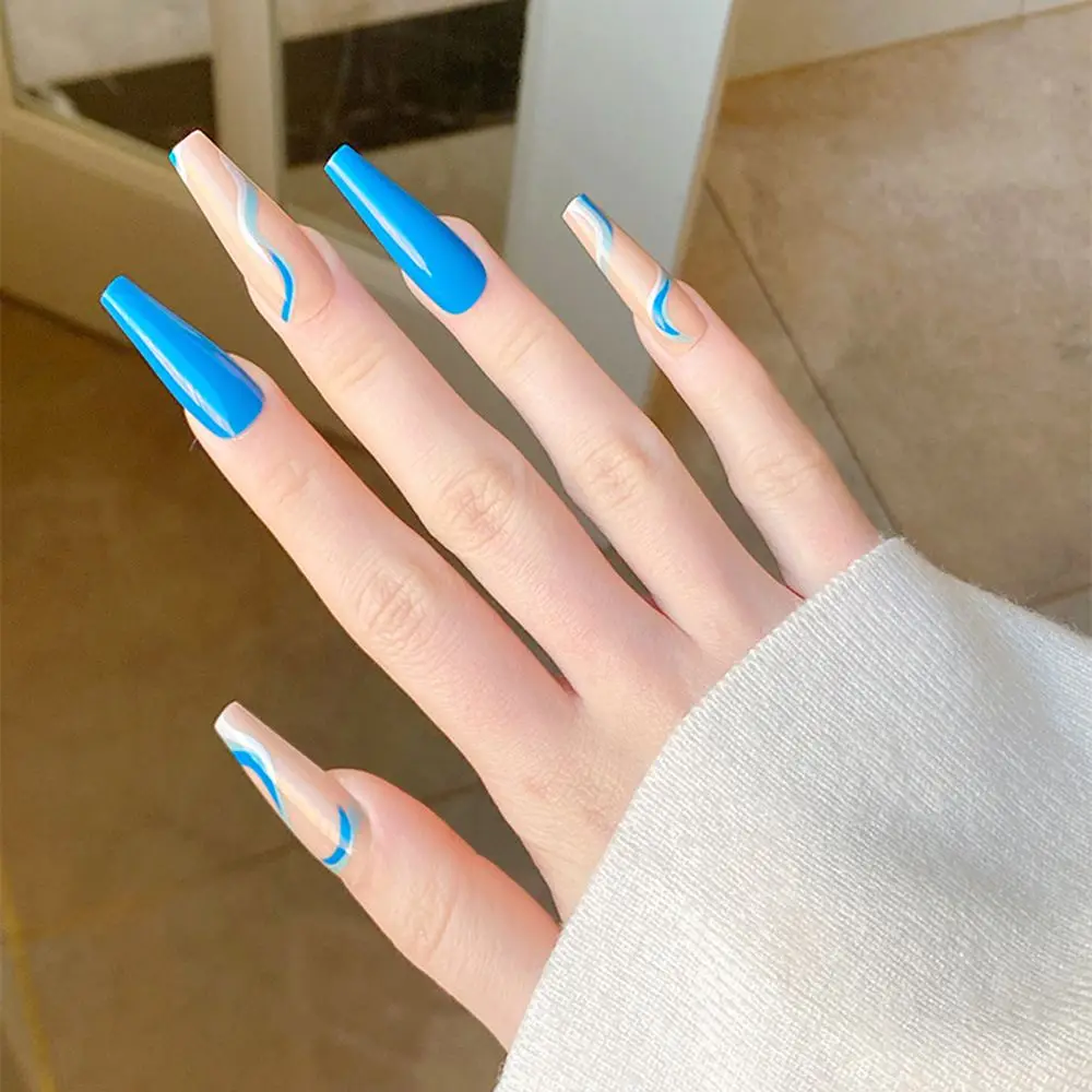 24 шт.кор. волнистые линии Дизайн Длинные балерины накладные ногти ...