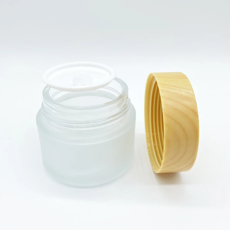 Баночка для крема из матового стекла с деревянной крышкой для макия...