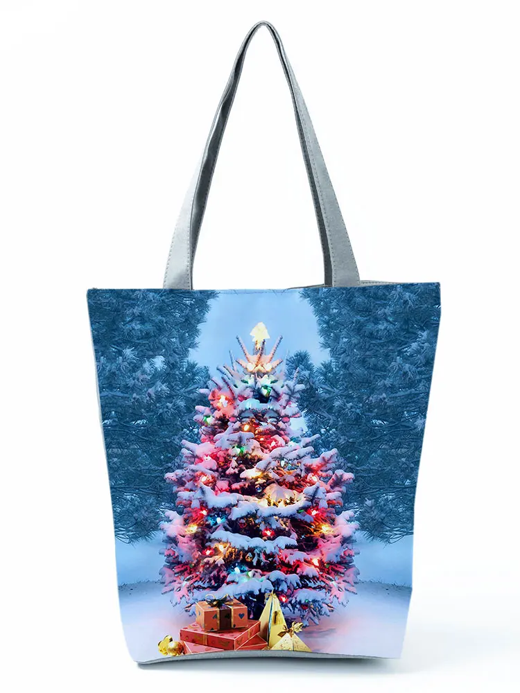Рождественская Женская сумочка для подарка с принтом елки, сумка-тоут с растениями, вместительная Экологически чистая многоразовая сумка для покупок, синяя складная сумка через плечо