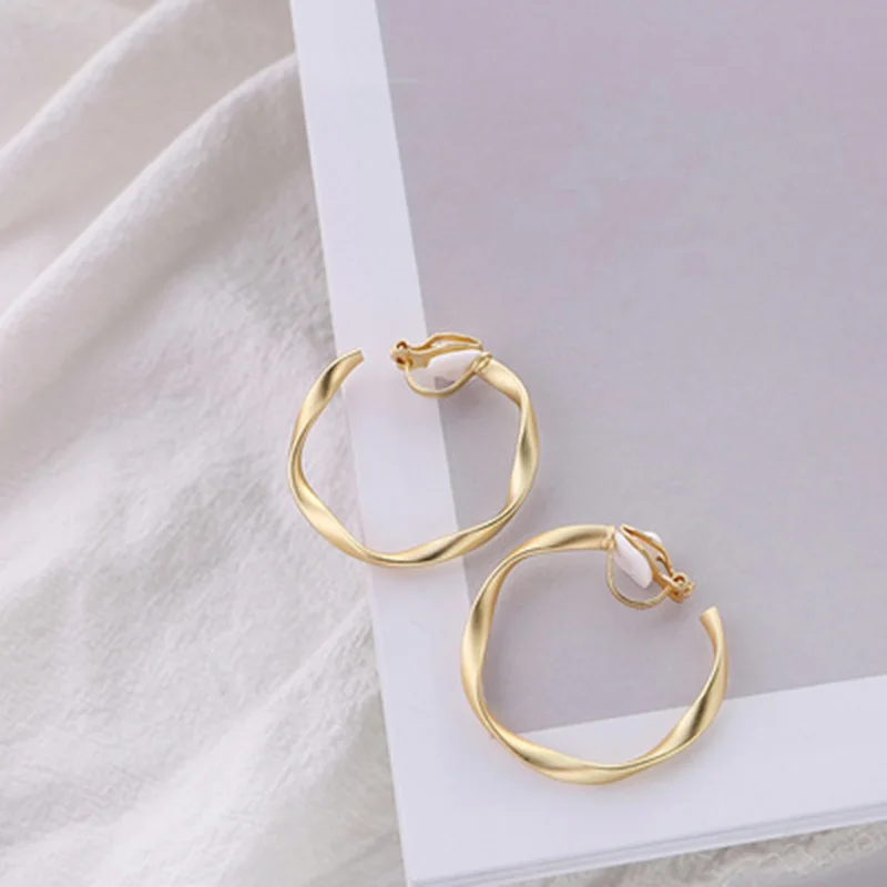 WENHQ новый золотой обруч серьги-клипсы модная C Форма серьги-манже...