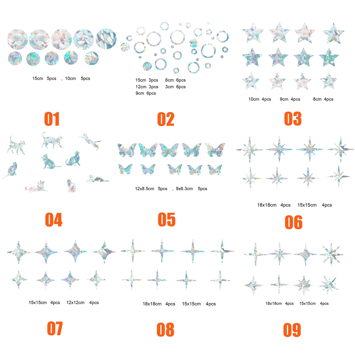 Наклейки на окна с 3d-радужным эффектом, бабочказвездаДекор с кошкой, многоразовые наклейки из ПВХ со статическим электричеством, без клея