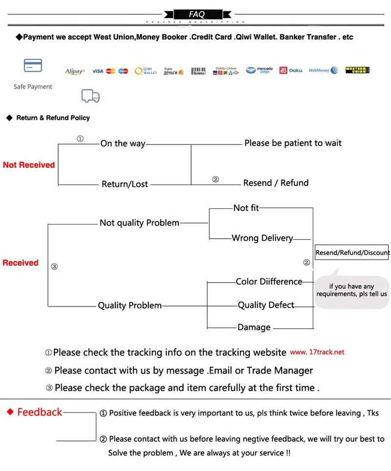 2. Пожалуйста, отправьте нам сообщение, прежде чем оставить отрицательный отзывы или открыть спор, мы сделаем все возможное, чтобы решить проблему как можно скорее.