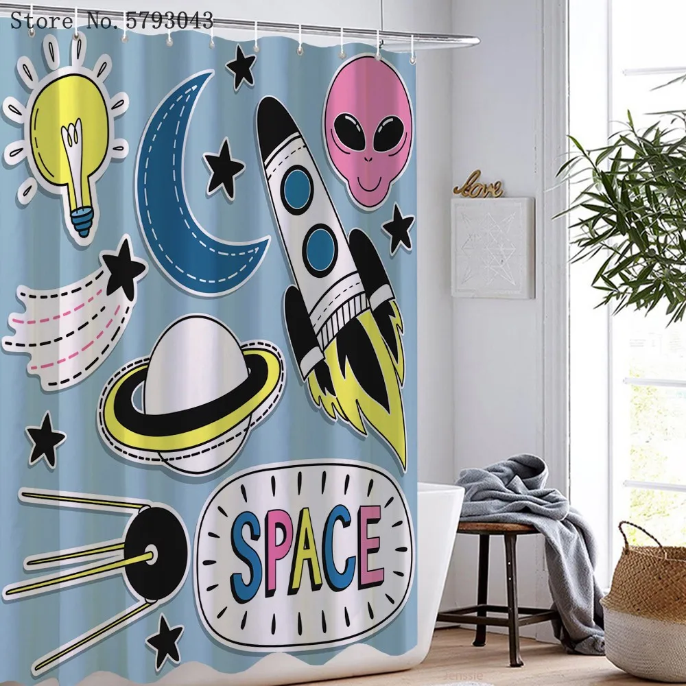 Луна астронавт занавески для душа 3D принт ракеты Вселенная Водонепроницаемая занавеска для душа домашний текстиль моющиеся занавески для ванной Декор