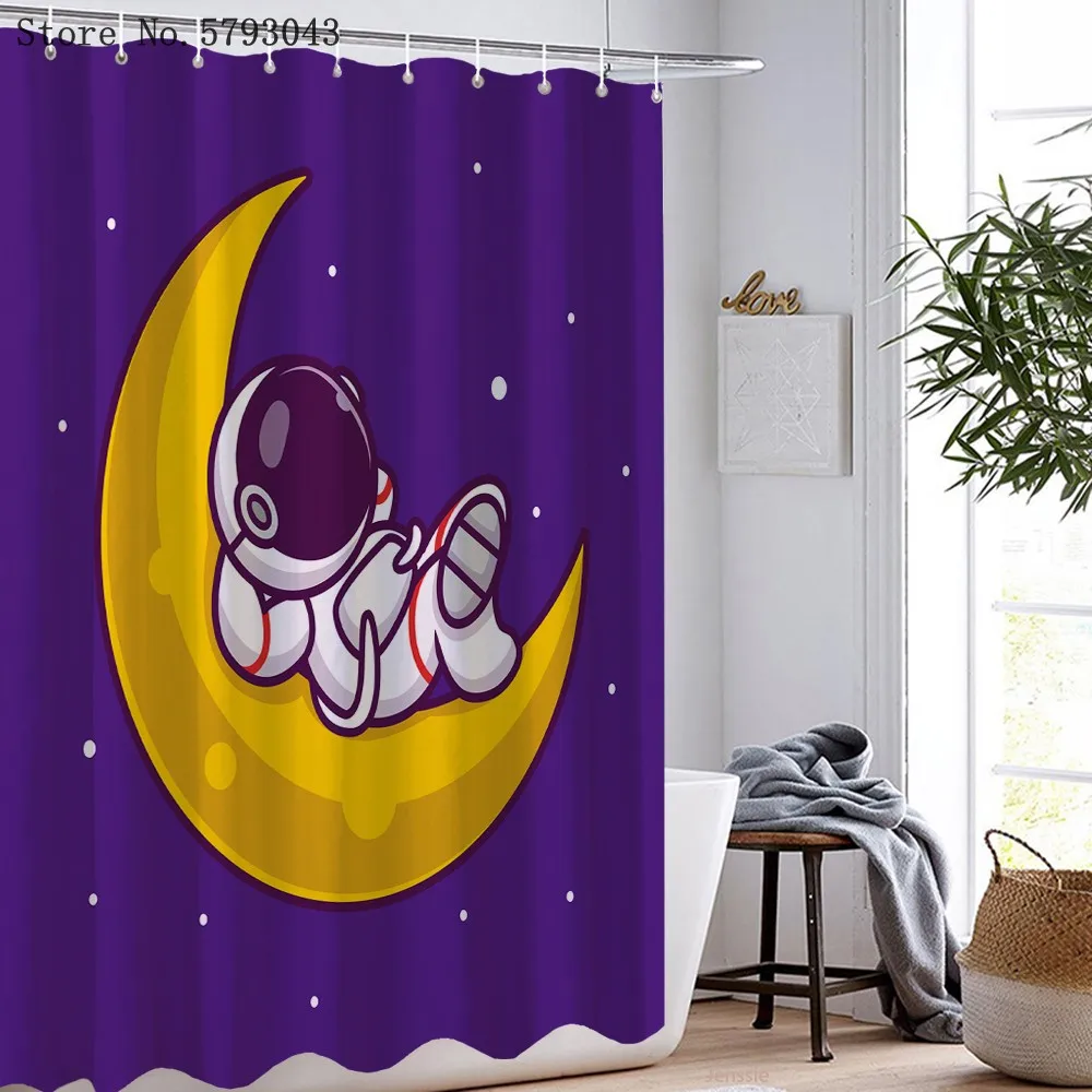 Водонепроницаемая шторка для душа, стирающаяся занавеска для ванной, с 3D принтом Луны, астронавта, Вселенной, домашний текстиль