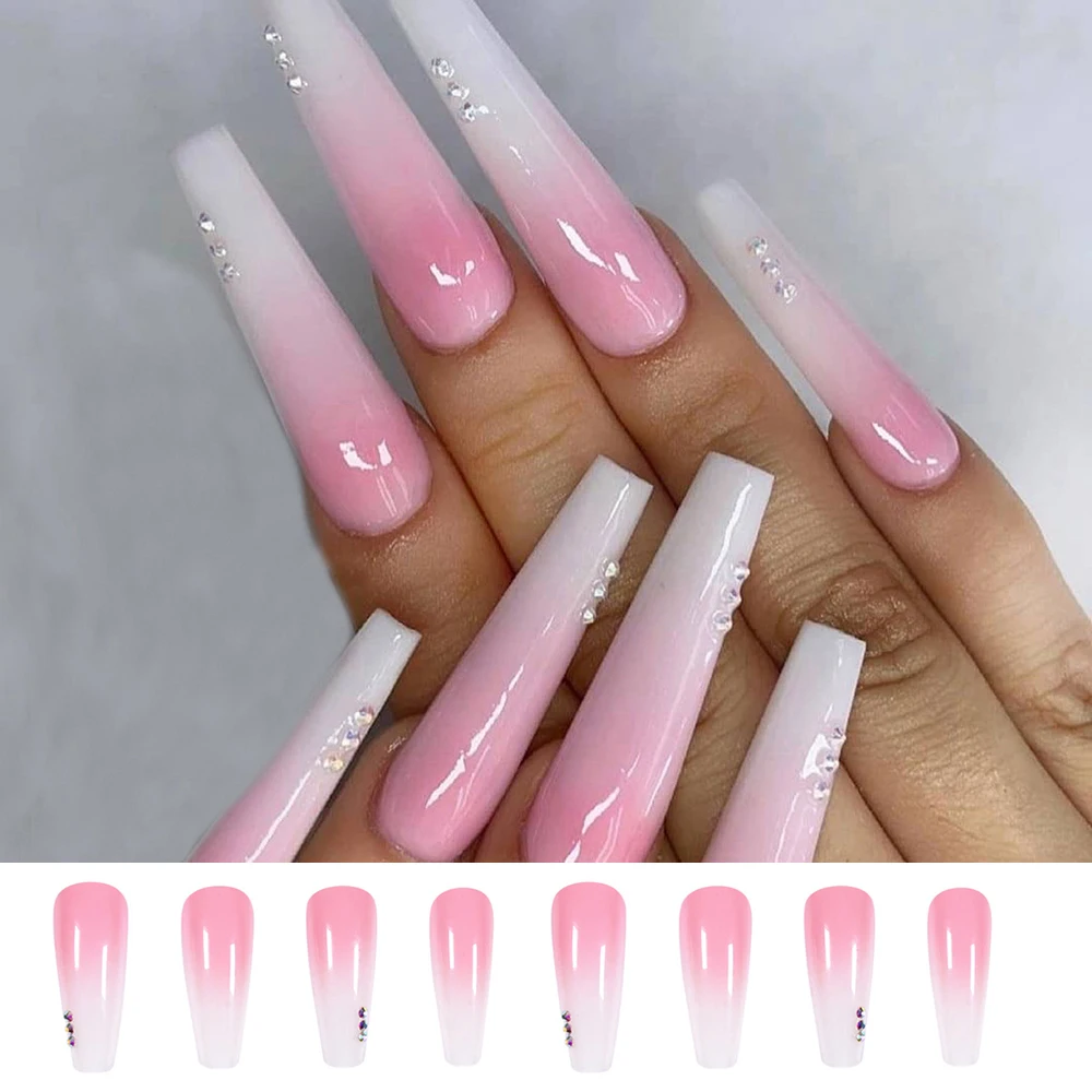 24 шт.корт. Съемные градиентные розовые длинные накладные ногти Стразы Балерина гроб накладные ногти полное покрытие акриловые накладные ногти