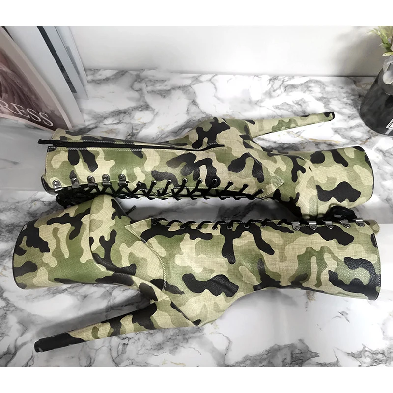 Женские ботильоны на платформе 20 см, пикантные модные камуфляжные ботинки-гладиаторы с открытым носком, обувь для танцев на шесте, обувь для шоу, на шнуровке, в готическом стиле, панк