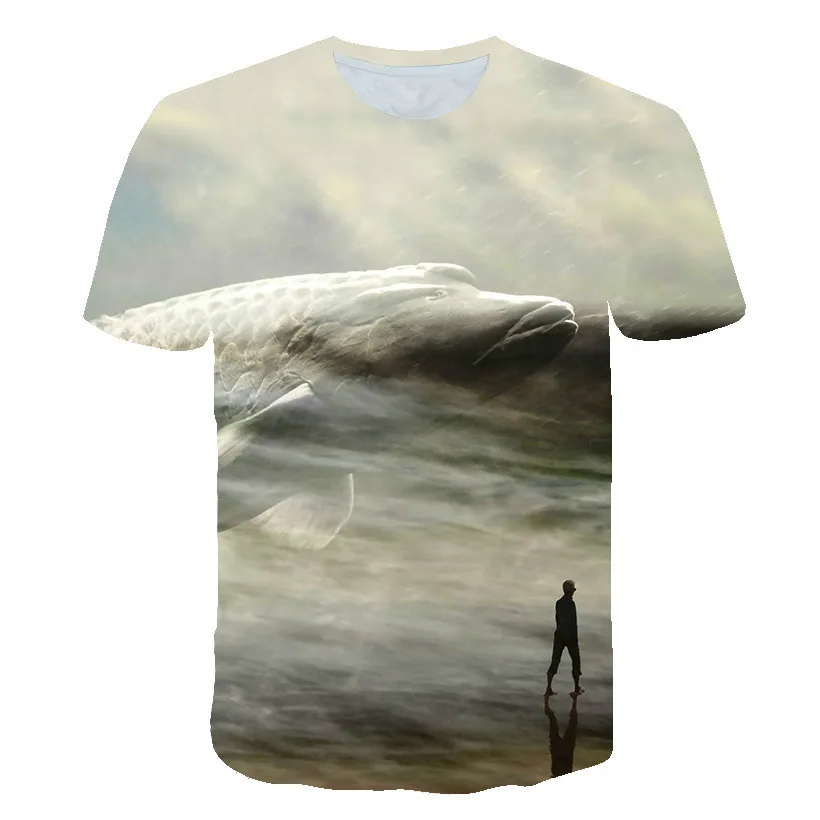 Летняя футболка с 3D-принтом рыбы, футболка с круглым вырезом для м...