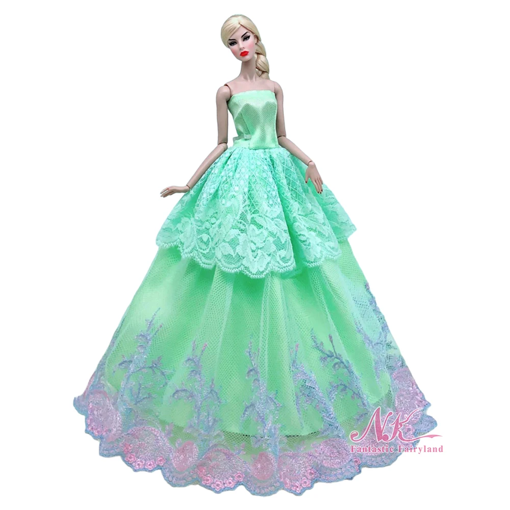 Зеленое кружевное многослойное свадебное платье NK для куклы Барби, наряды, модная вечерние 16, аксессуары для кукол BJD, игрушки