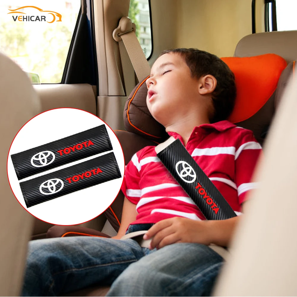 Автомобильные накладки из углеродного волокна для ремня безопасности для TOYOTA, вязаные автомобильные аксессуары, 2 шт.