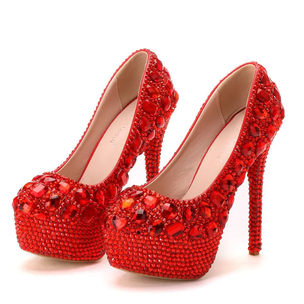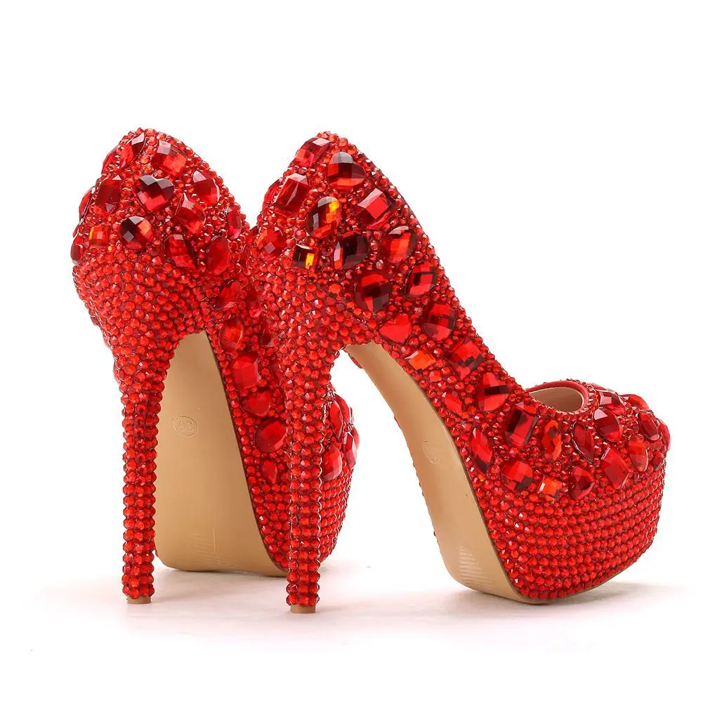 Свадебные туфли с жемчугом, туфли на высоком каблуке 11 см14 см тонкий высокий каблук круглый носок свадебные туфли с бусинами; Очаровательные туфли-лодочки; Элегантные туфли-лодочки, красные, золотые вечерние туфли H0148
