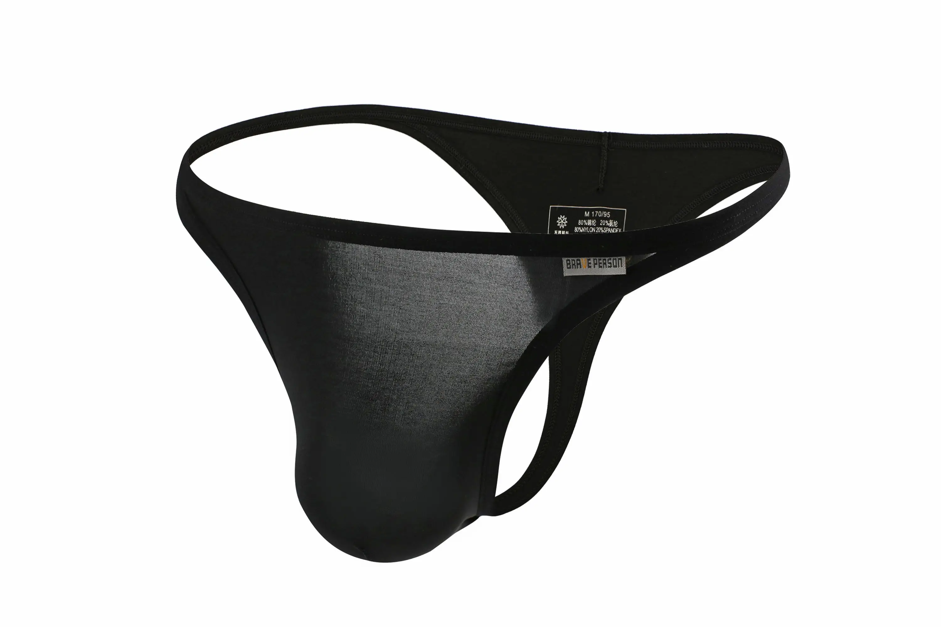 Мужские стринги из вискозы BRAVE PERSON, черные однотонные прозрачн...