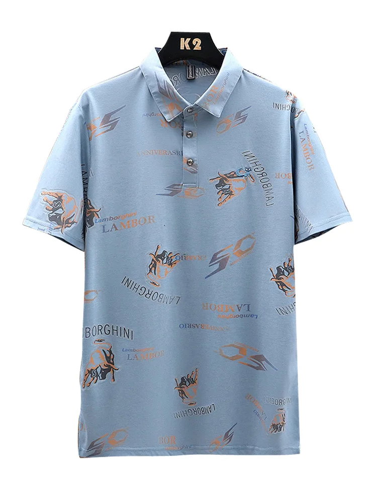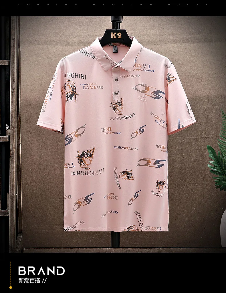 2021 мужские ледяная шелковая рубашка-поло с короткими рукавами, летняя футболка высокого качества с принтом в виде Уличная Повседневная Мужская рубашка поло, Прямая поставка