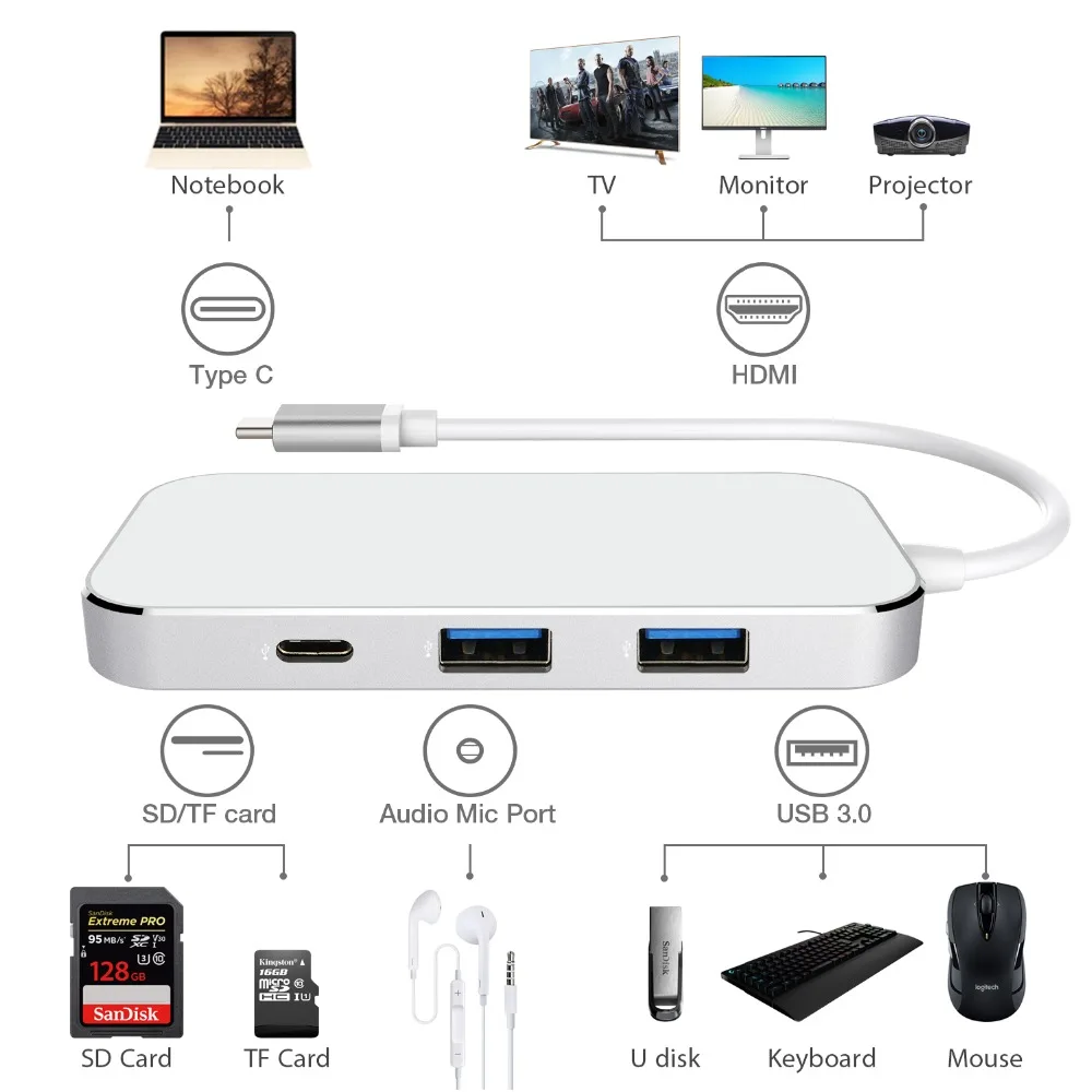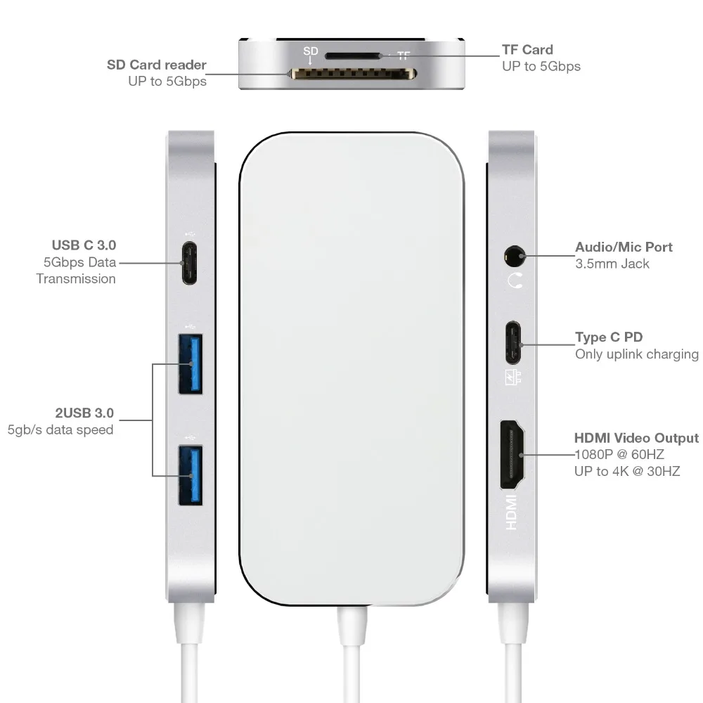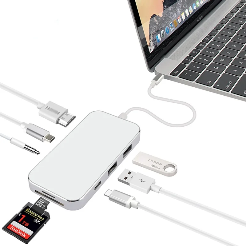 DZLST 8 в 1 Тип C 3,1 концентратор для типа C PD 3,5 мм аудио-видео в формате 4K HDMI-совместимость с USB 3,0 SD/устройство для считывания с tf-карт Hub разветвитель для Macbook
