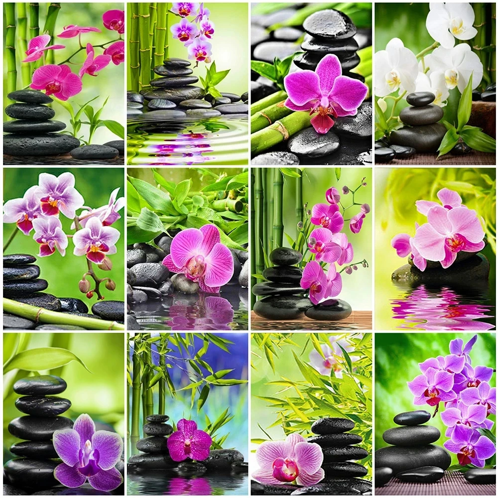 Алмазная 3D вышивка Орхидея, картина крестиком, полноразмерная 5D мозаика сделай сам из камней для пейзажа Стразы, домашний декор