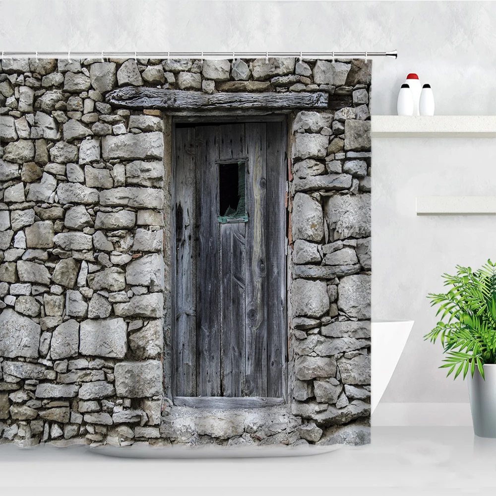 Занавеска для душа с 3D изображением старых деревянных дверей, ткан...