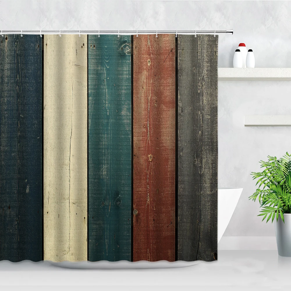 Ретро занавеска для душа с текстурой древесины, ностальгические цве...
