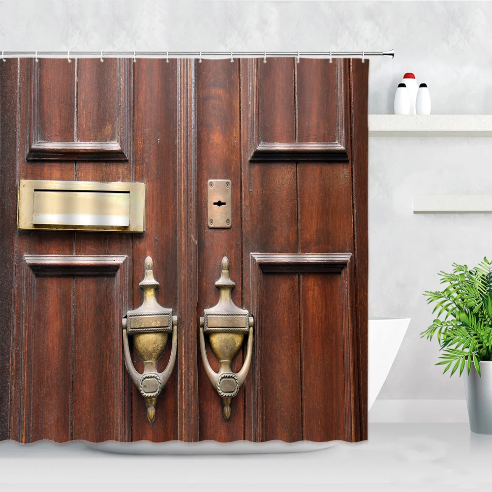 Старые винтажные деревянные двери, занавески для душа, водонепрониц...