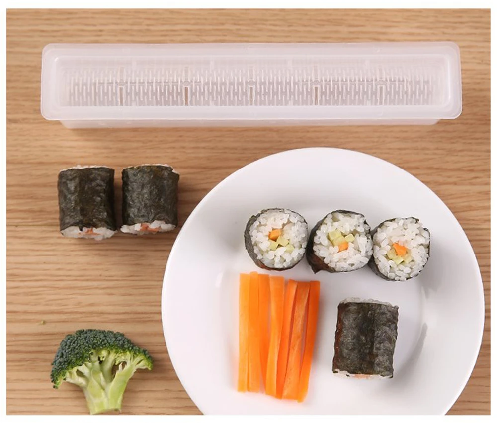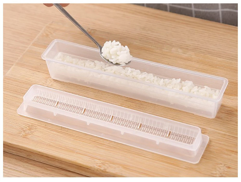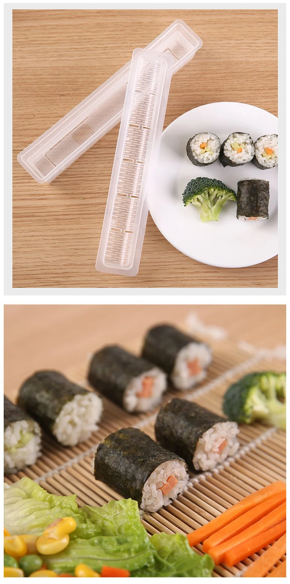 Посылка включает: 1 х машина для приготовления суши Материал: полипропилен Цвет: прозрачный Размер: 21*4*3,8 см/8,26*1,57*1,49 дюйма