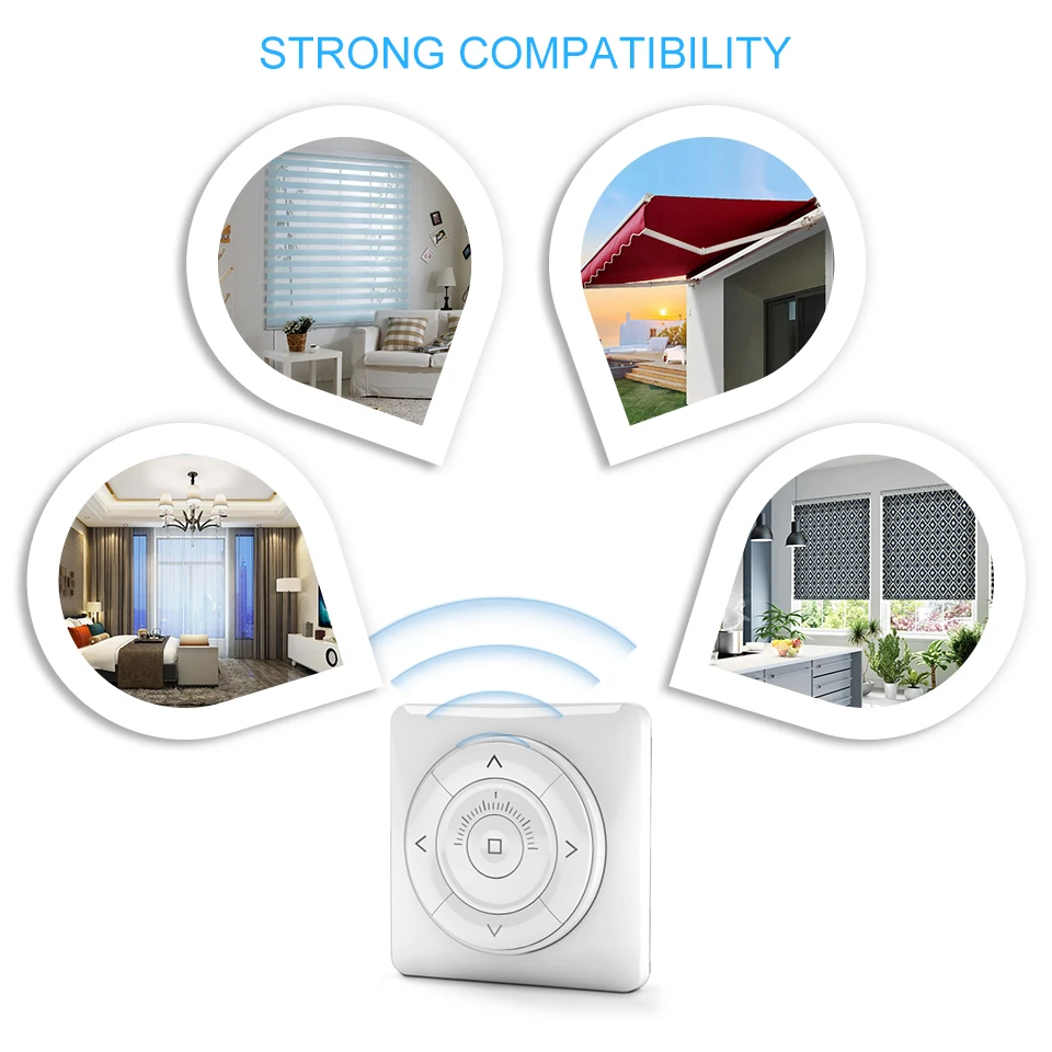 Пожалуйста, убедитесь, что занавес, тент или мотор для качения двери, который вам нужно подключить, является A-OK брендом. В противном случае, нет гарантии, что наш пульт дистанционного управления может быть использован.Если ваш двигатель является другим брендом и это внешний приемник, пожалуйста, купите приемник в нашем магазине и используйте его с пультом дистанционного управления.
