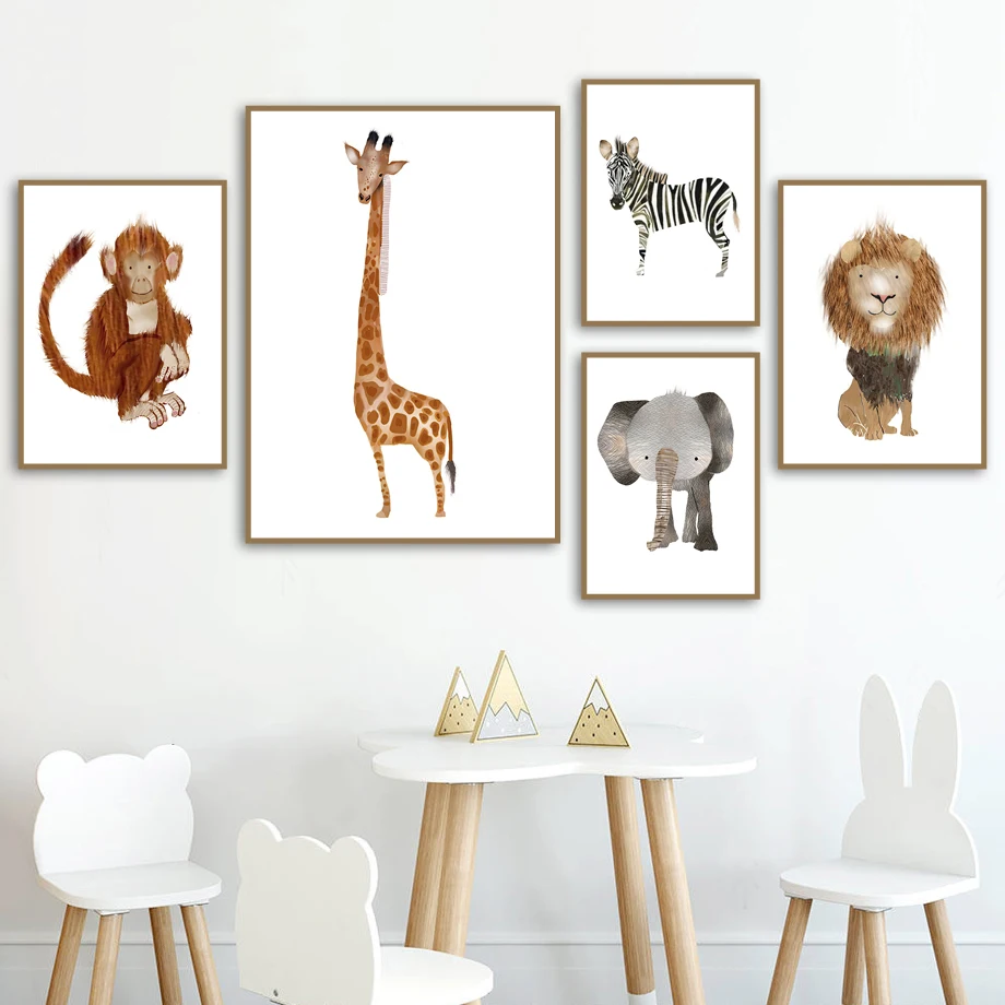 Скандинавские плакаты и принты, леопардовая Зебра, слон, Лев, жираф...