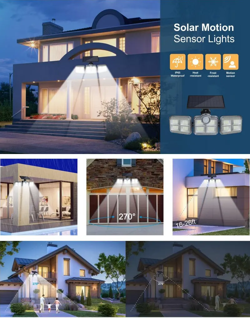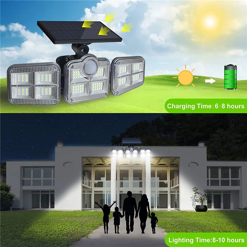 171 COB Солнечный СВЕТОДИОДНЫЙ светильник Открытый датчик движения настенный светильник 3 головки 270 широкоугольное освещение водонепроницаемый свет s для сада гаража новогодние украшения 2022 гирлянда уличная Датчик