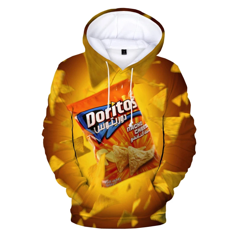 Толстовка мужская с капюшоном, модная уличная одежда в стиле Харадзюку, с принтом картофельные чипсы, повседневная одежда унисекс, осень
