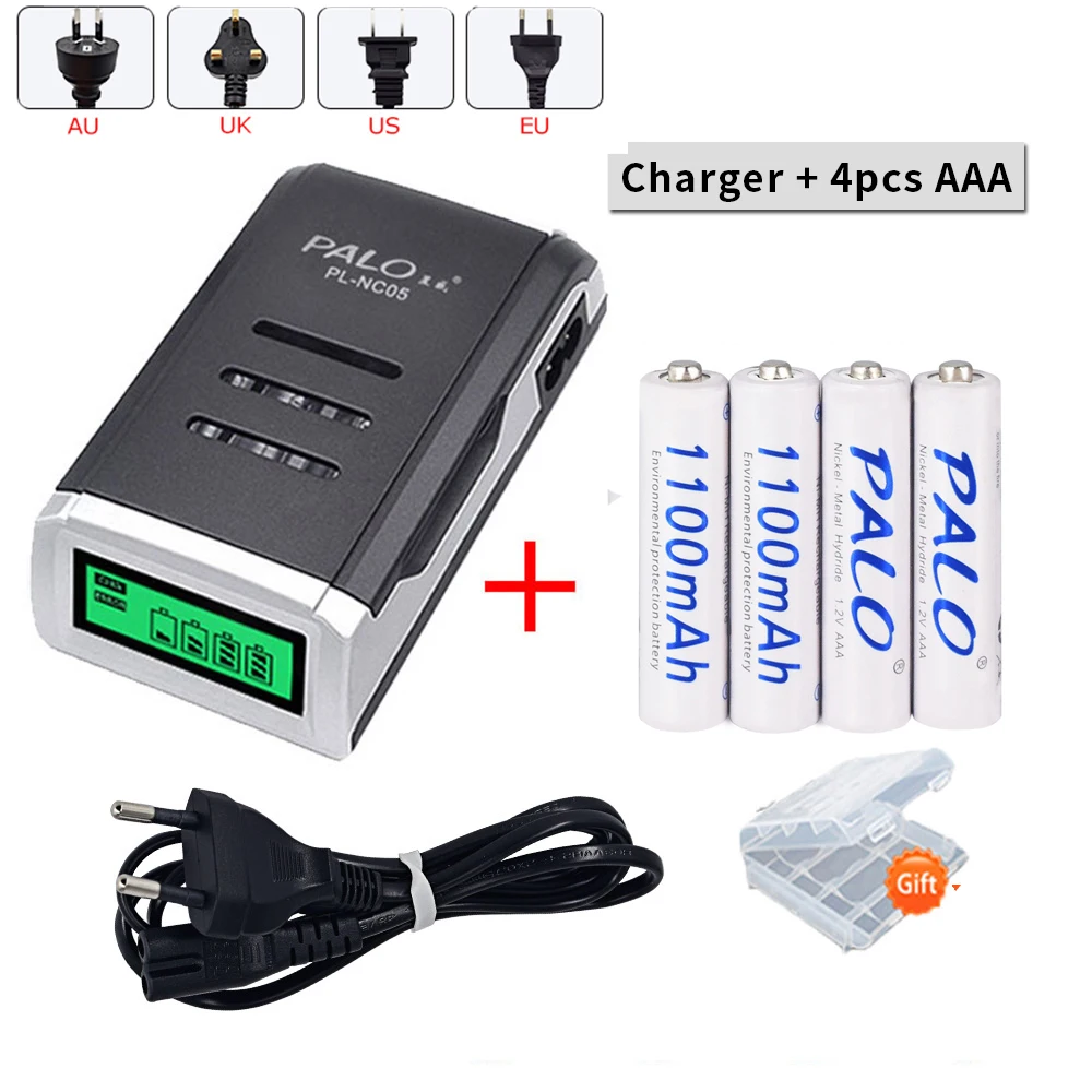 Аккумуляторная батарея PALO 1,2 в AAA ni-MH 1,2 в aaa батареи с зарядным устройством с ЖК-дисплеем для AA AAA ni-MH ni-cd аккумуляторов