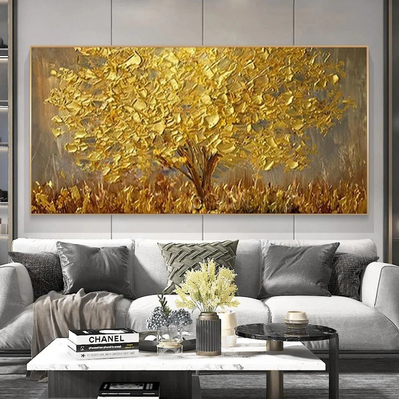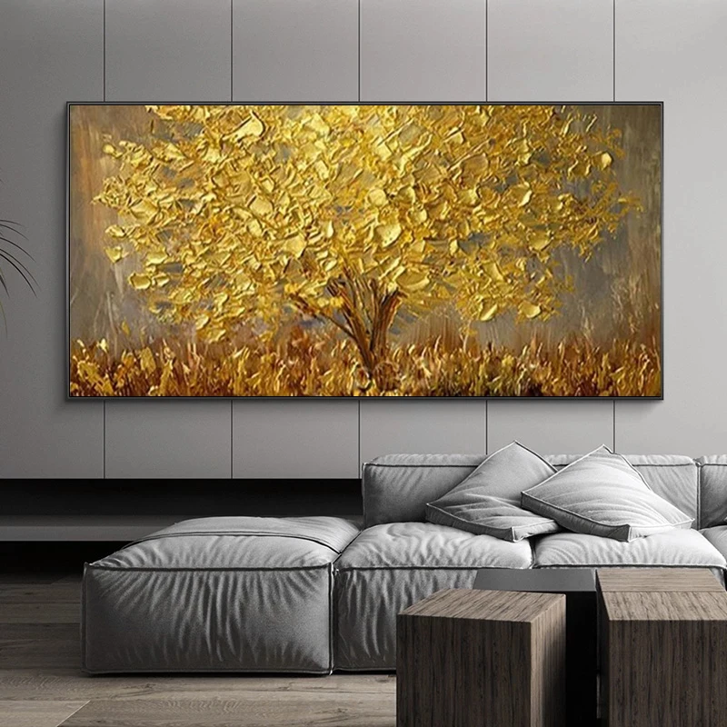 Большое современное золотое дерево, художественное искусство, картина маслом на холсте, настенные постеры и принты, настенные картины для гостиной, Настенный декор