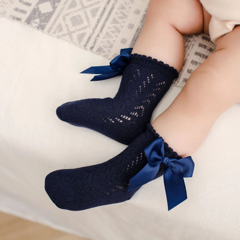 Носки для новорожденных девочек, хлопковые, с бантом, сетчатые, на ...