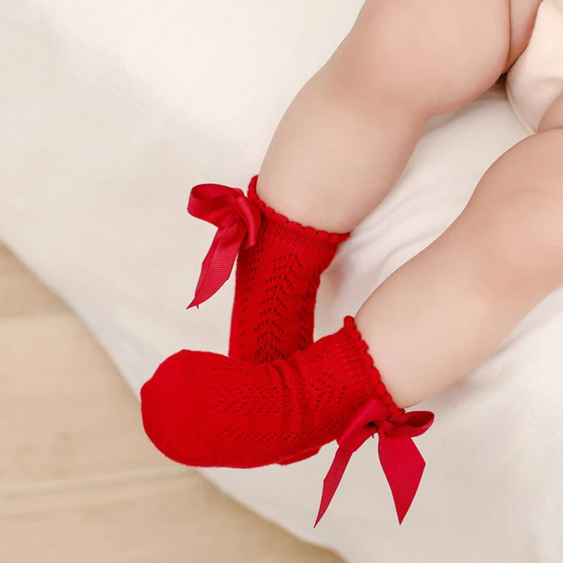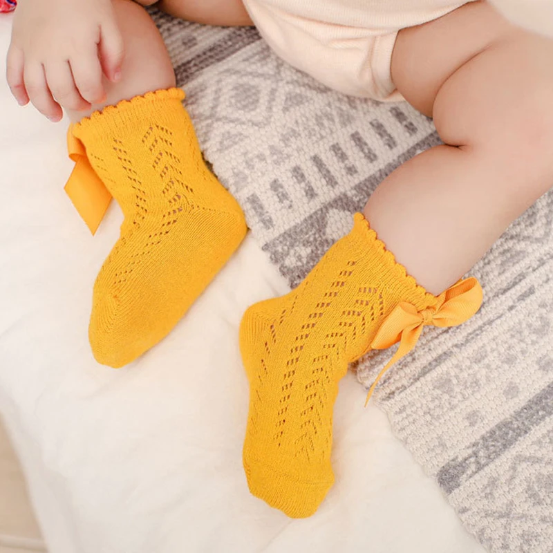 Милые носки с бантом для маленьких девочек, мягкие хлопковые летние сетчатые носки для новорожденных, однотонные Дышащие Детские носки для младенцев от 0 до 18 месяцев