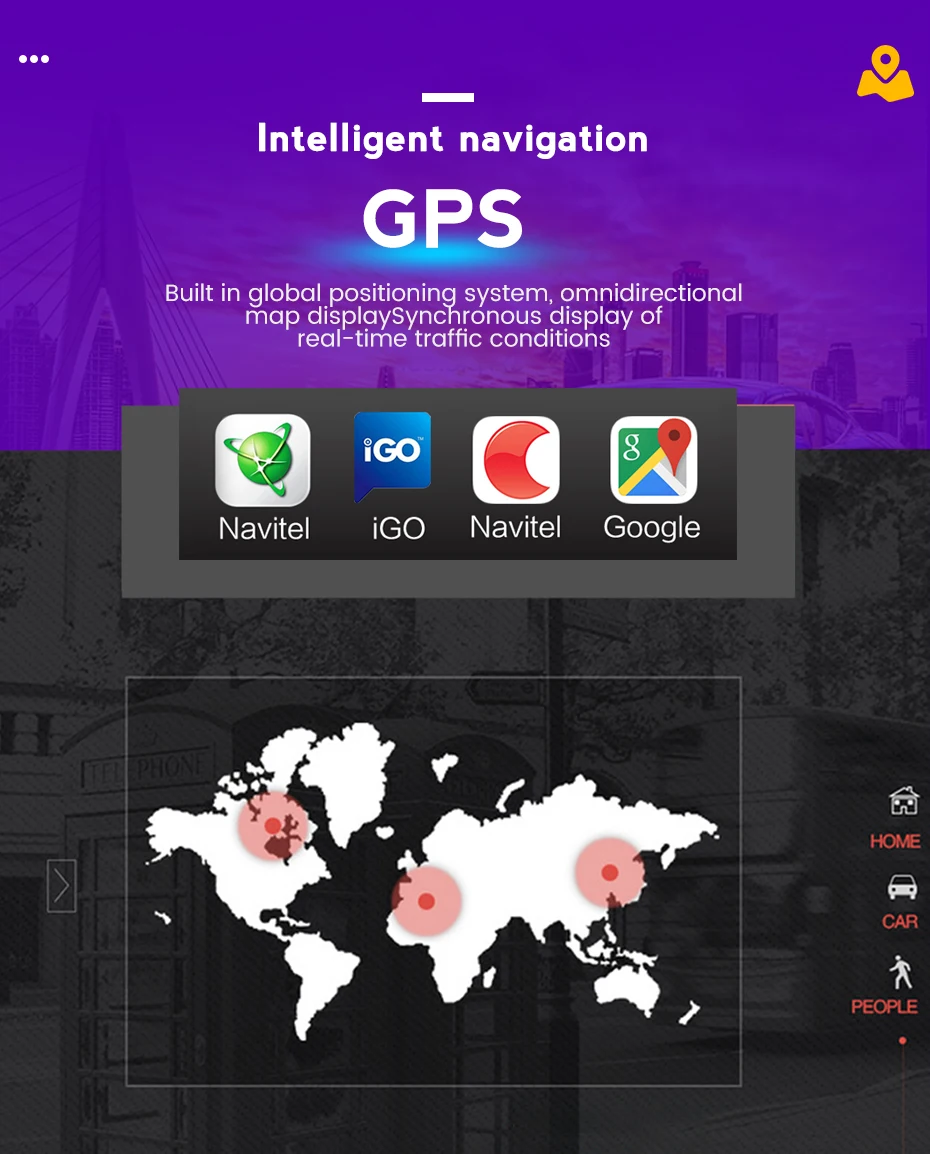 Встроенная Глобальная система позиционирования, всенаправленный дисплей карты, синхронный дисплей в режиме реального времени условия дорожного движения
