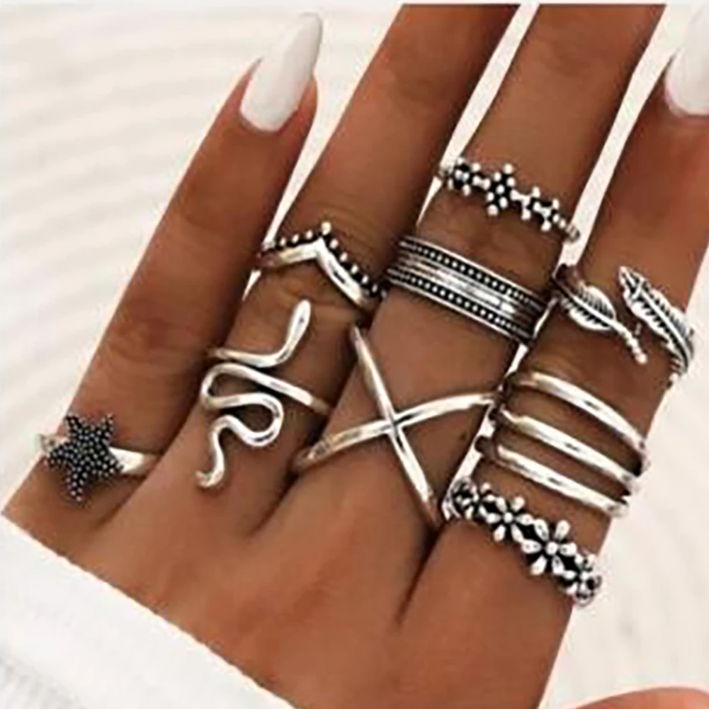 Набор колец в стиле хип-хопРок женских ювелирных изделий из металла геометрической формы в стиле панк