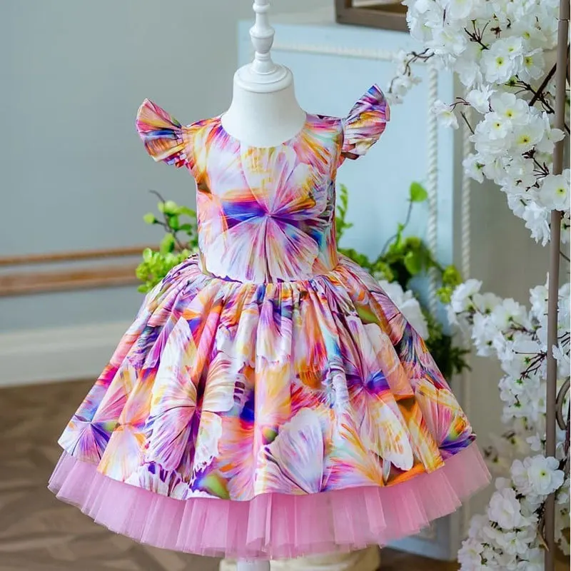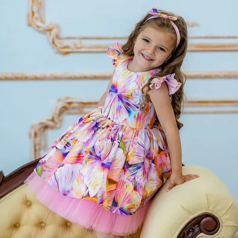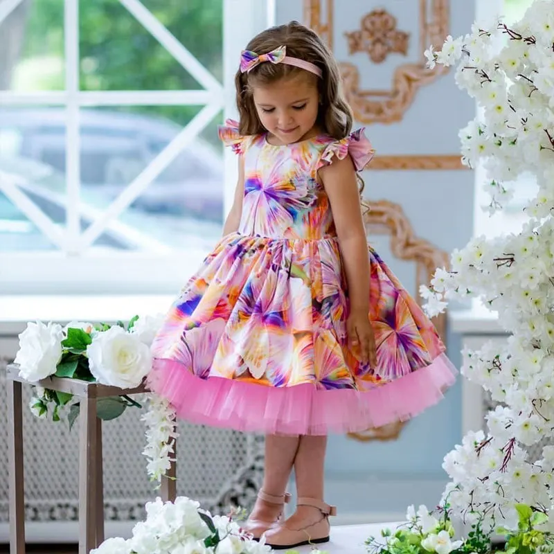 Детские платья для девочек, платье принцессы с цветочным принтом, вечерние платья для девочек, лето 2019