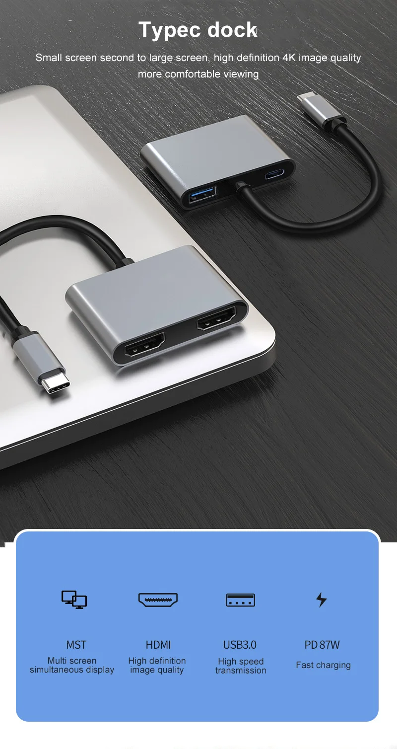 Название продукта: Тип C к HDTV * 2 + USB + PD MST