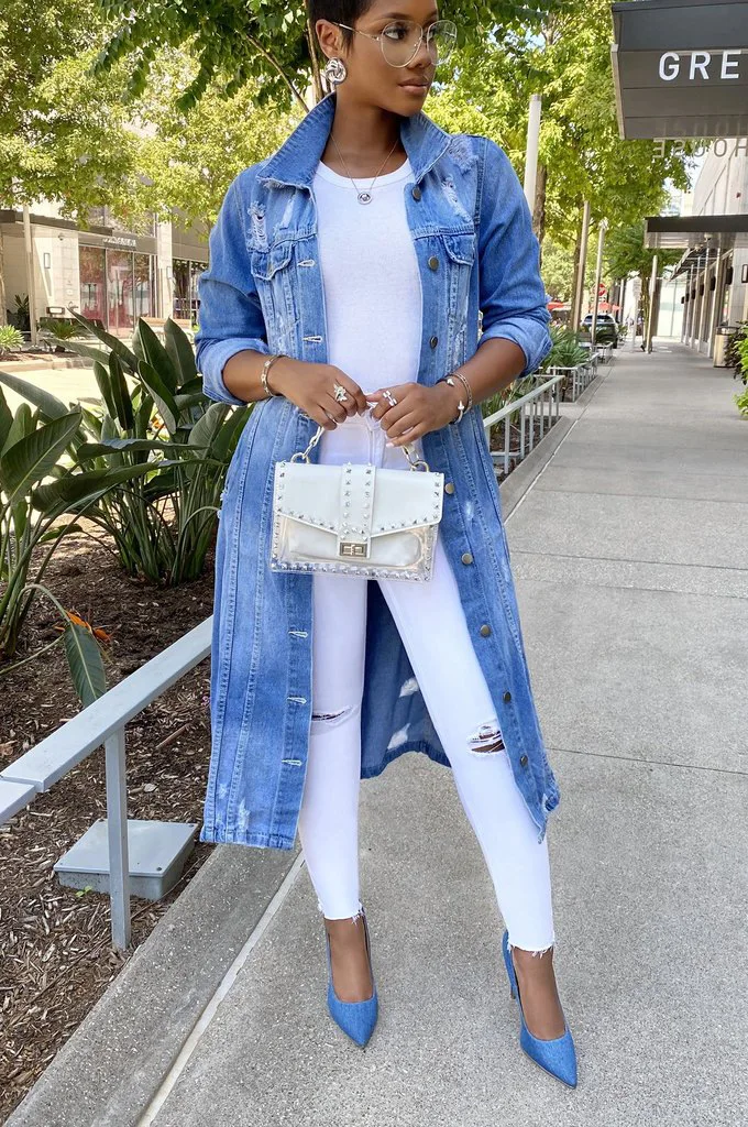 Длинные джинсовые куртки женские осенние сексуальные рваные джинсы ...