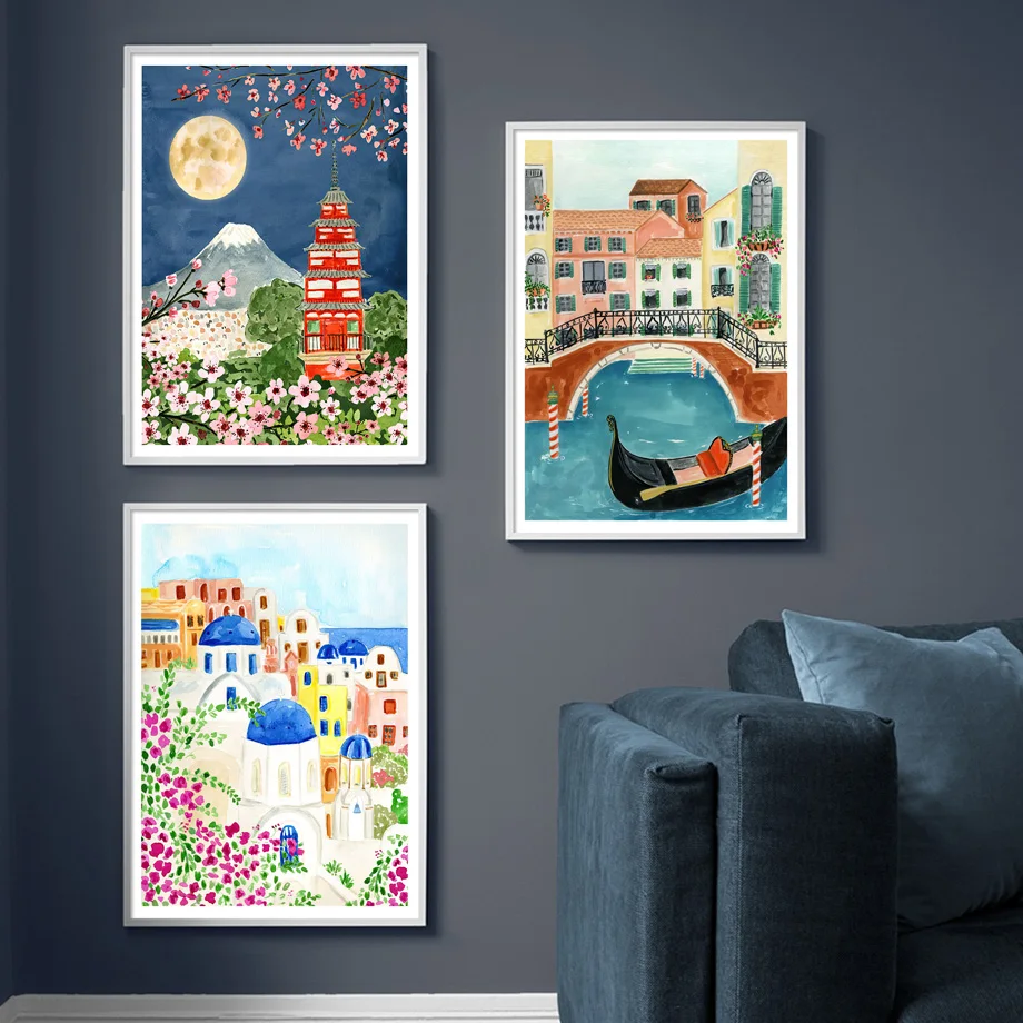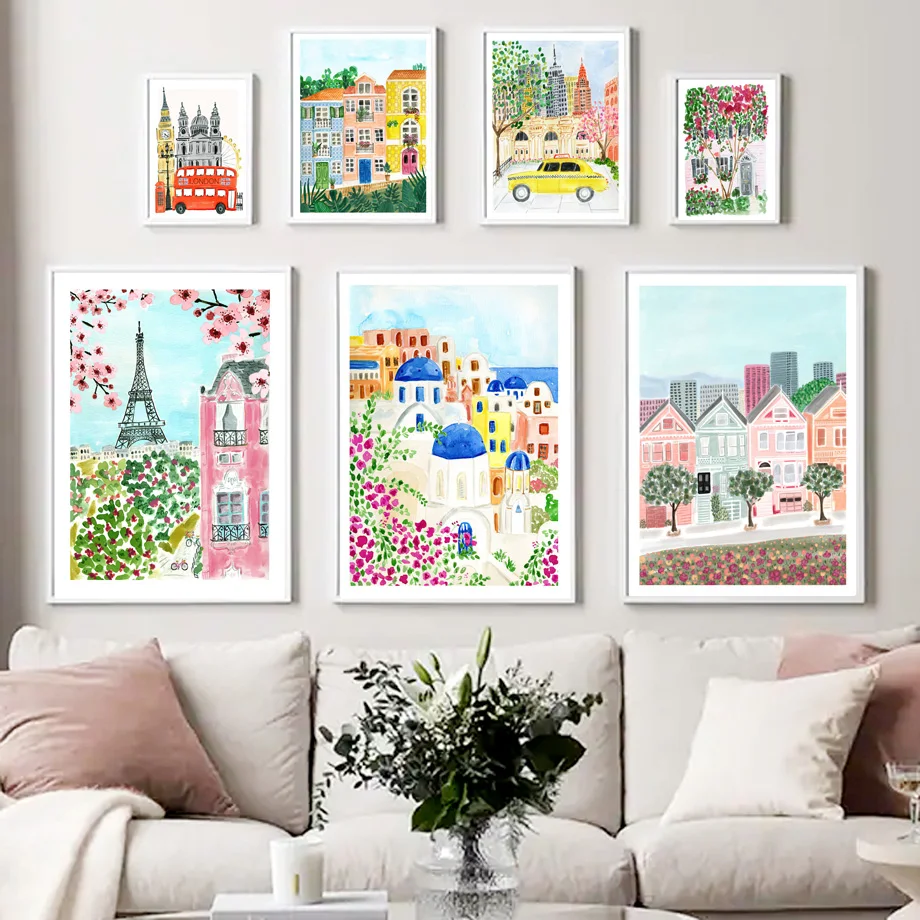 Алмазная живопись сделай сам, Эйфелева башня Парижа, Сан-Франциско, алмазная вышивка, Санторини, городской пейзаж, вышивка крестиком, декор ручной работы