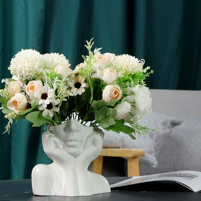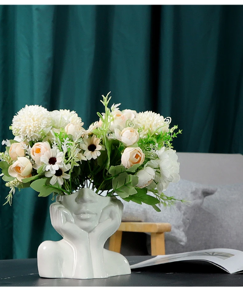 Керамическая ваза с белым лицом, абстрактная полулицевая Цветочная ...