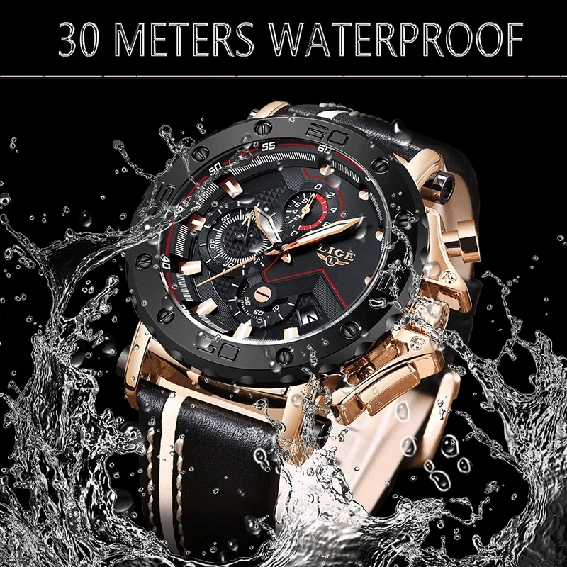 Часы наручные LIGE мужские водонепроницаемые с кожаным ремешком, сп...