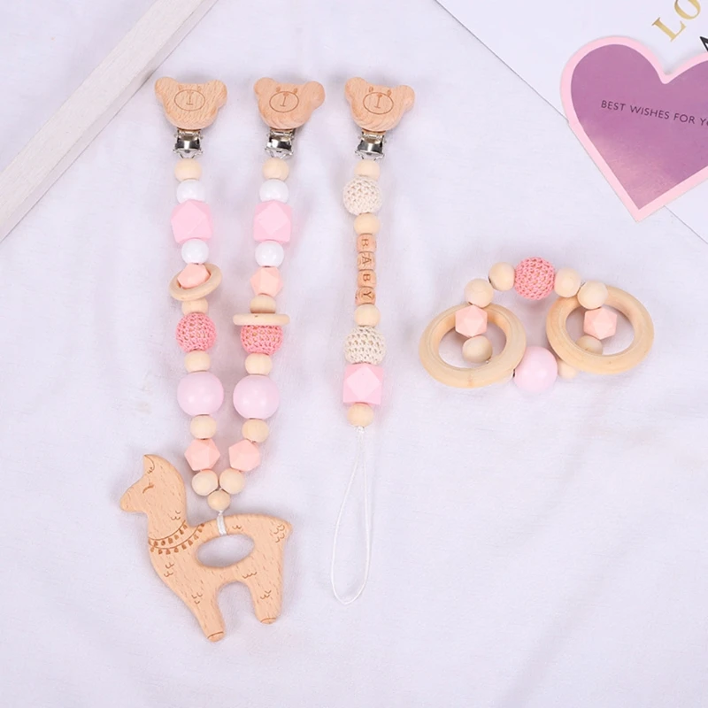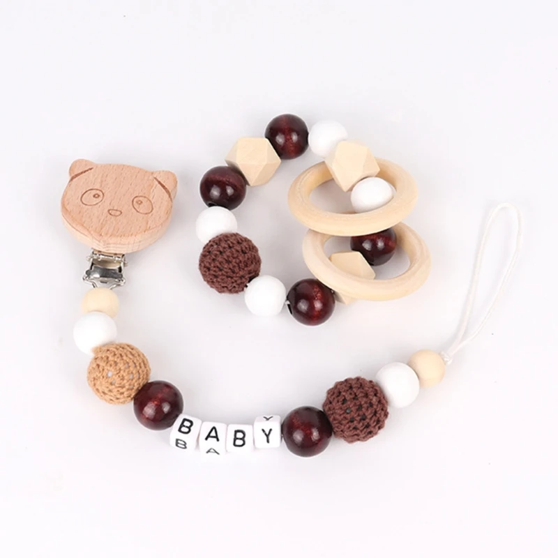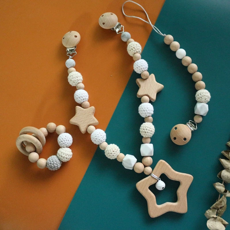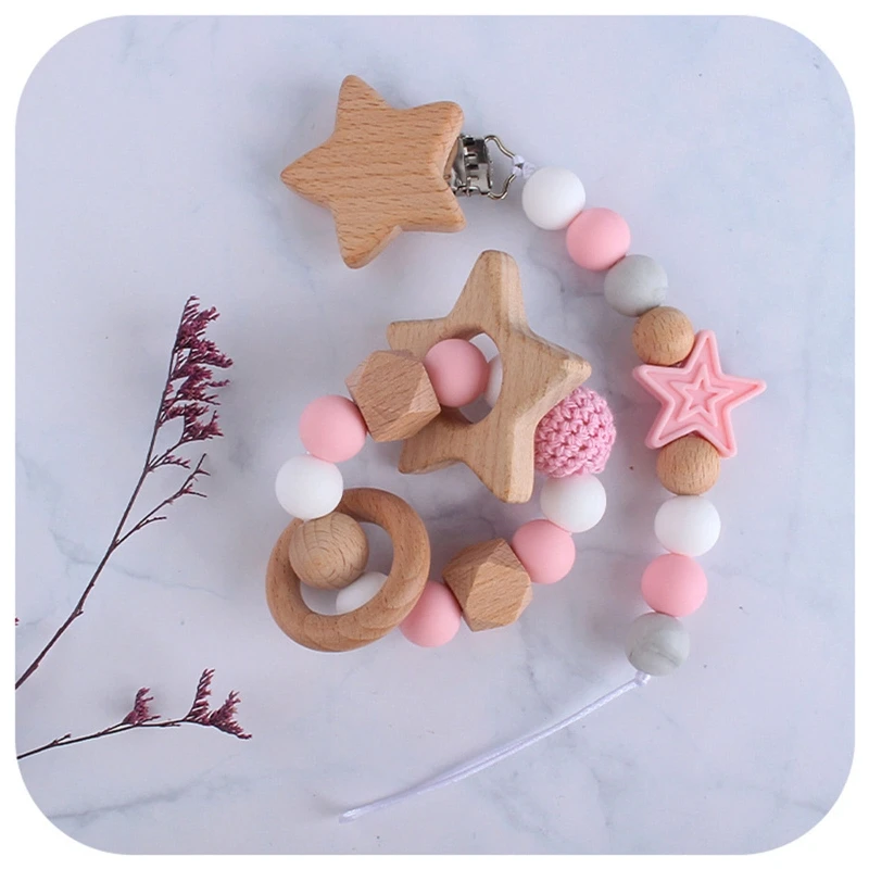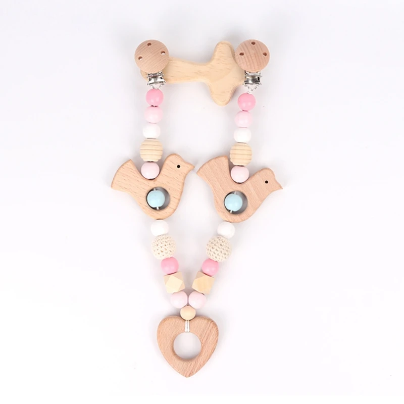 Детская коляска кулон погремушка соска клипса цепочка браслет с силиконовыми бусинами деревянный Прорезыватель для кормления жевательные детские игрушки держатель для соски