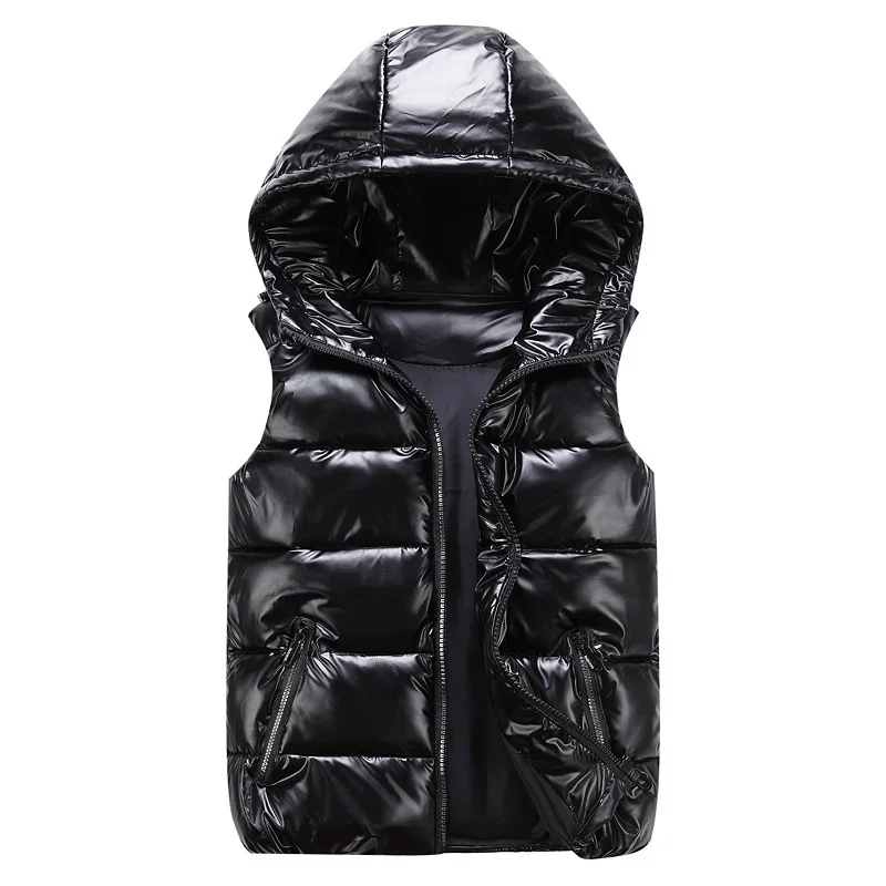 Черный жилет куртка для женщин с капюшоном; Лидер продаж; Пальто без рукавов для женщин; Ботильоны с яркая майка куртка с хлопковой подкладкой на молнии куртка Женский вязаный жилет