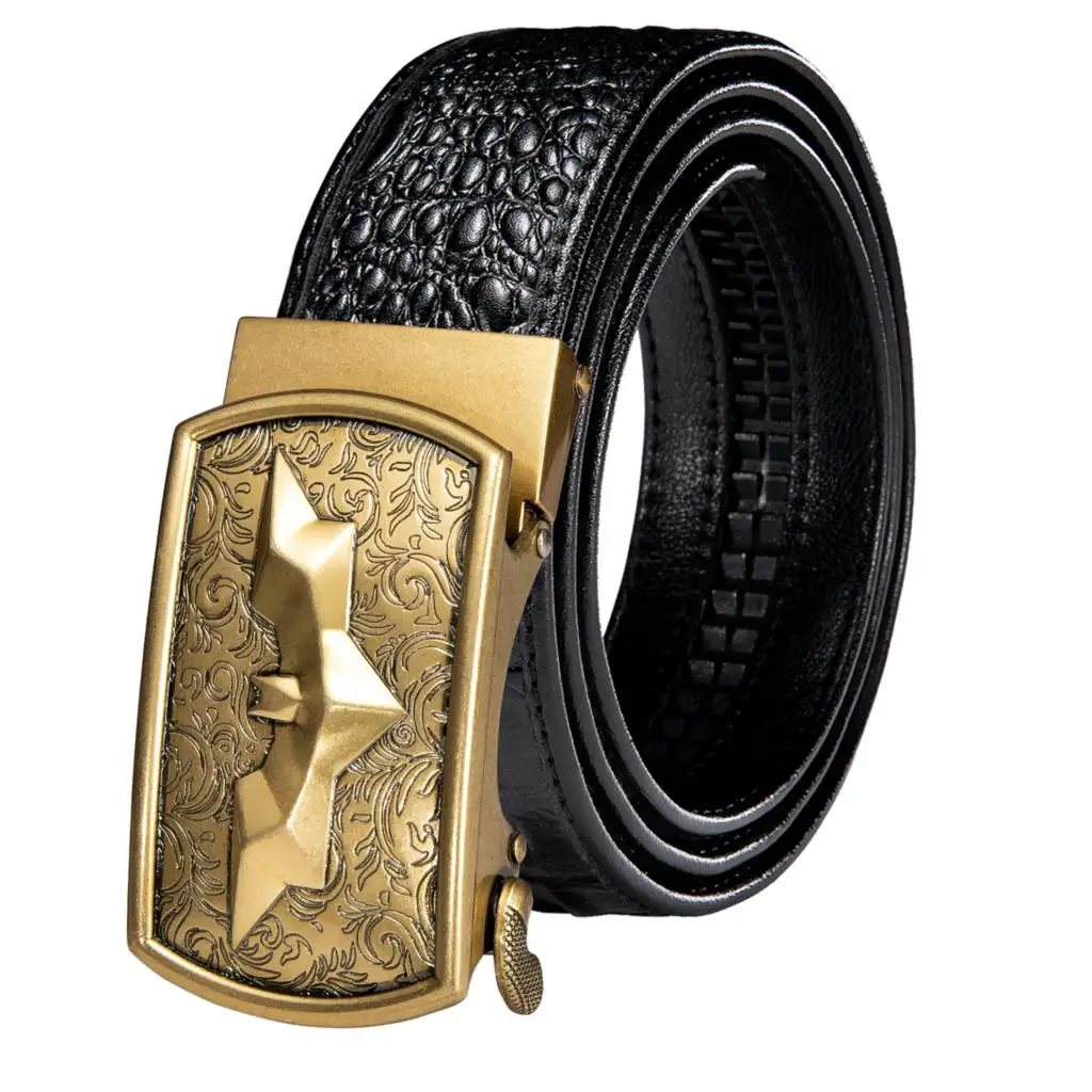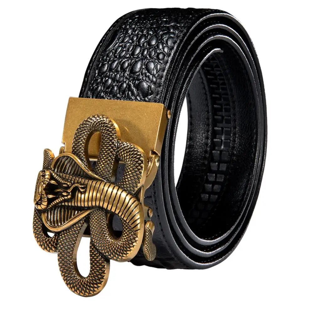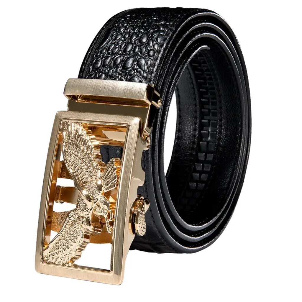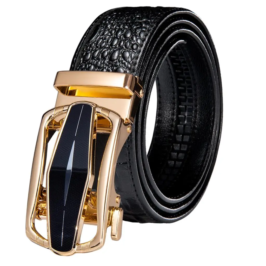 Ремень мужской кожаный с автоматической пряжкой, золотого, черного ...