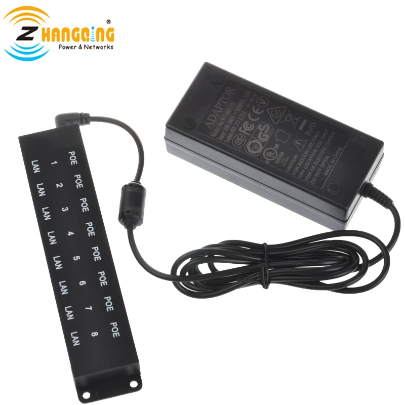 8 портов, 100 Мбитс, Инжектор PoE, пассивное питание через Ethernet для сетевого видеонаблюдения, MikroTik Ubiquiti PoE с источником питания 48 в 60 Вт